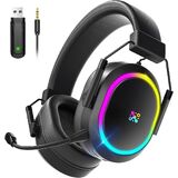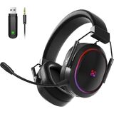 سماعات الألعاب اللاسلكية لسماعات الرأس PS5 PS4 ، Bluetooth 2.4 جيجا هرتز سماعات مريحة خفيفة الوزن مع ميكروفون لإلغاء الضوضاء ، 23 مللي ثانية من زمن الوصول ، 50+ ساعة وسماعات ألعاب الصوت المحيطة لجهاز الكمبيوتر المحمول كمبيوتر محمول