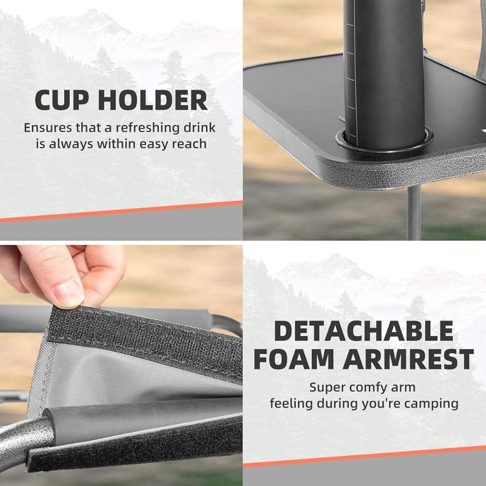 【Space-Saving Portability】Portable ergonomic camping chair collapses to compact 19.7"x4.7"x34.65" with included carry strap. Lightweight yet sturdy 11.2lbs frame features quick-lock mechanism for 15-second setup - ideal for car camping, sporting events, and patio storage