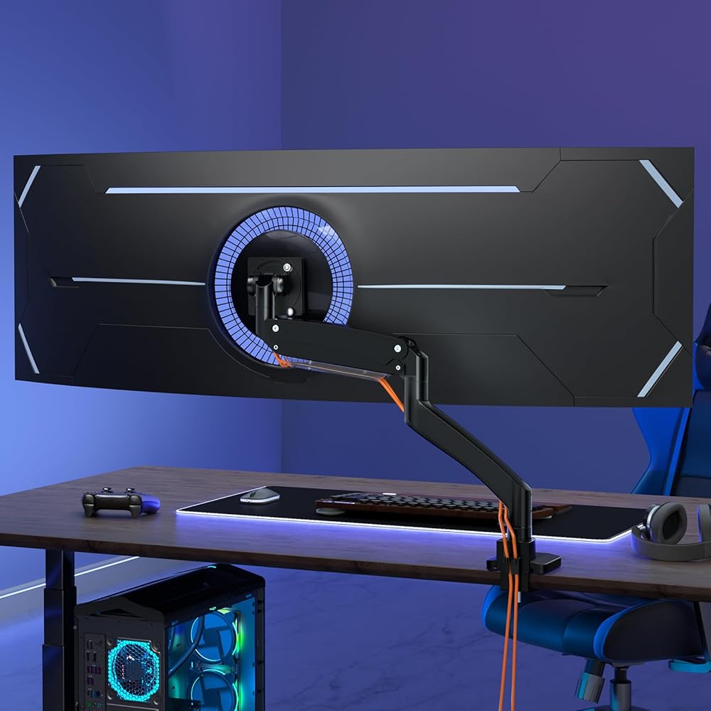 Born for Ultrawide Monitor: Premium single ultrawide monitor arm fits most 22 - 57 inch Flat and Curved Screens and holds up to 59.4 lbs in weight; It's suitable for VESA patterns 75 x 75, 100 x 100, 200 x 100, 100 x 200, 200 x 200 mm; It transform your workspace easily as you enhance your posture and reduce strain on your neck, back, and shoulders