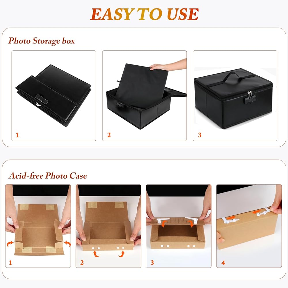 Our photos with 18 inner acid-free photo boxes, an acid-free environment to safely protect your precious photos, and a combination lock designed on the outside of the box, which can be easily locked or unlocked by simply changing 3 digits, thus protecting your precious photos from prying eyes and increasing your privacy.