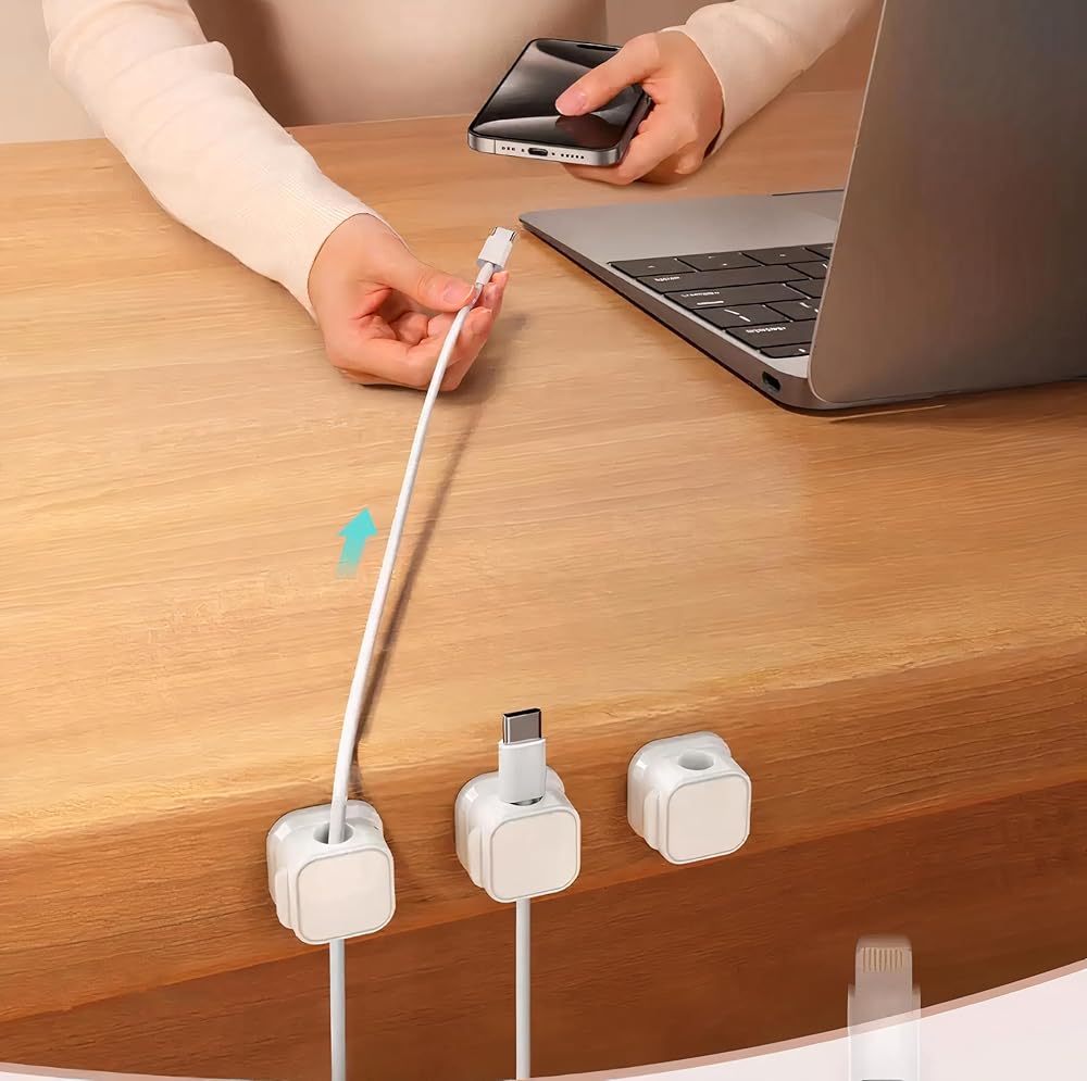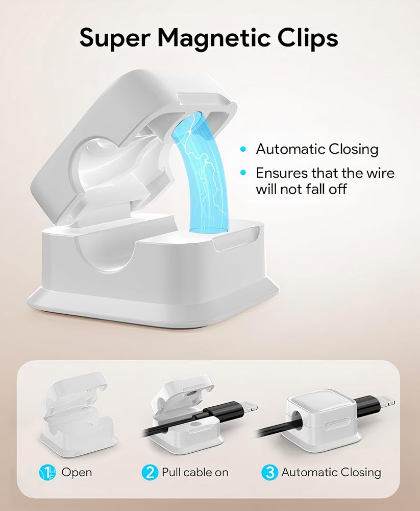 (One finger use:) you can easily open clips and put the cable in as well as close by using your one finger . strong magnetic factor provides freely open and close movement and makes you put less effort. it's aesthetic and pretty simple.