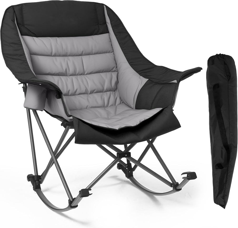 Elevate your outdoor comfort with the Foristrail Oversized Rocking Camping Chair! Engineered for adventure seekers and relaxation lovers alike, this heavy-duty 400lb capacity chair combines innovative design with premium features. Rock Your Relaxation: Sink into the gentle rocking motion of our ergonomic camp chair, crafted to mimic the soothing sway of a traditional porch rocker. Whether you're roasting marshmallows at a campsite, cheering at a sports event, or enjoying a quiet evening on your patio, this chair transforms any outdoor space into a personal oasis. Unbeatable Comfort: The fully padded seat, backrest, and headrest are upholstered with high-density foam, offering cloud-like support for your spine and neck. The oversized 37” width and 41” height provide ample space for taller users, while the breathable Oxford fabric keeps you cool during summer adventures. Built to Last: Constructed with a corrosion-resistant steel frame and reinforced joints, this chair withstands rugged terrains and frequent use. The anti-slip feet ensure stability on grass, sand, or gravel, while the water-resistant fabric wipes clean effortlessly. Smart Convenience: Keep essentials handy with the oversized side pocket (fits tablets, books, or a small cooler) and a secure cup holder designed for cans, tumblers, or coffee mugs. Sets up in seconds and folds compactly for travel—perfect for RVs, car trunks, or storage sheds. Versatile & Reliable: From weekend camping trips to backyard parties, the Foristrail Rocking Camp Chair adapts to every outdoor scenario. Trusted by campers, hikers, and families, it's the ultimate blend of comfort, durability, and style.