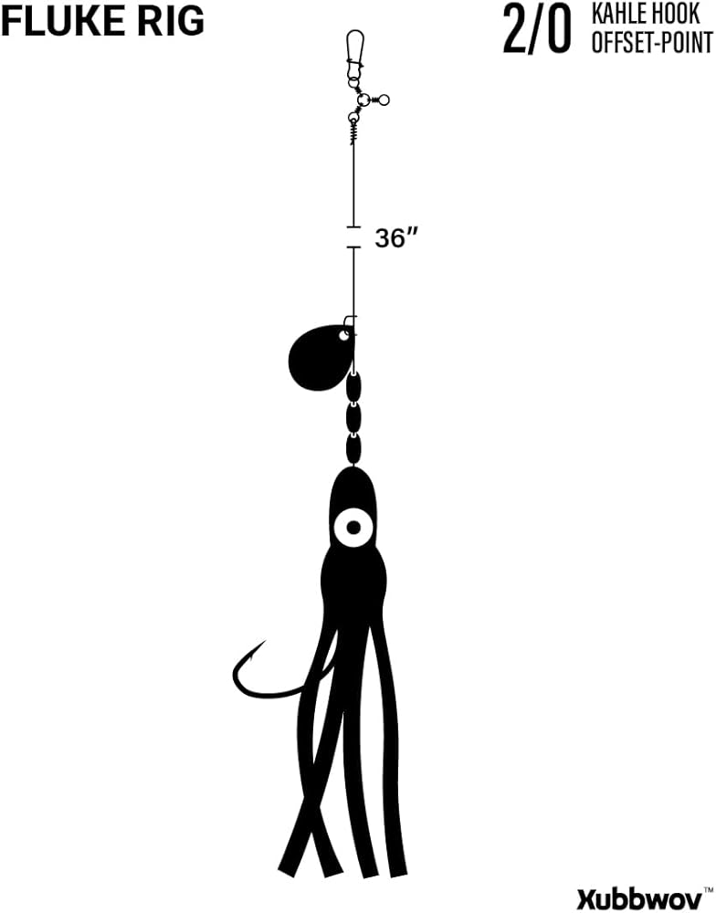 PROFESSIONAL DESIGN: Complete fluke rig set featuring 36-inch leader, 0.028-inch mono line, and 2/0 Kahle hooks for optimal fishing performance