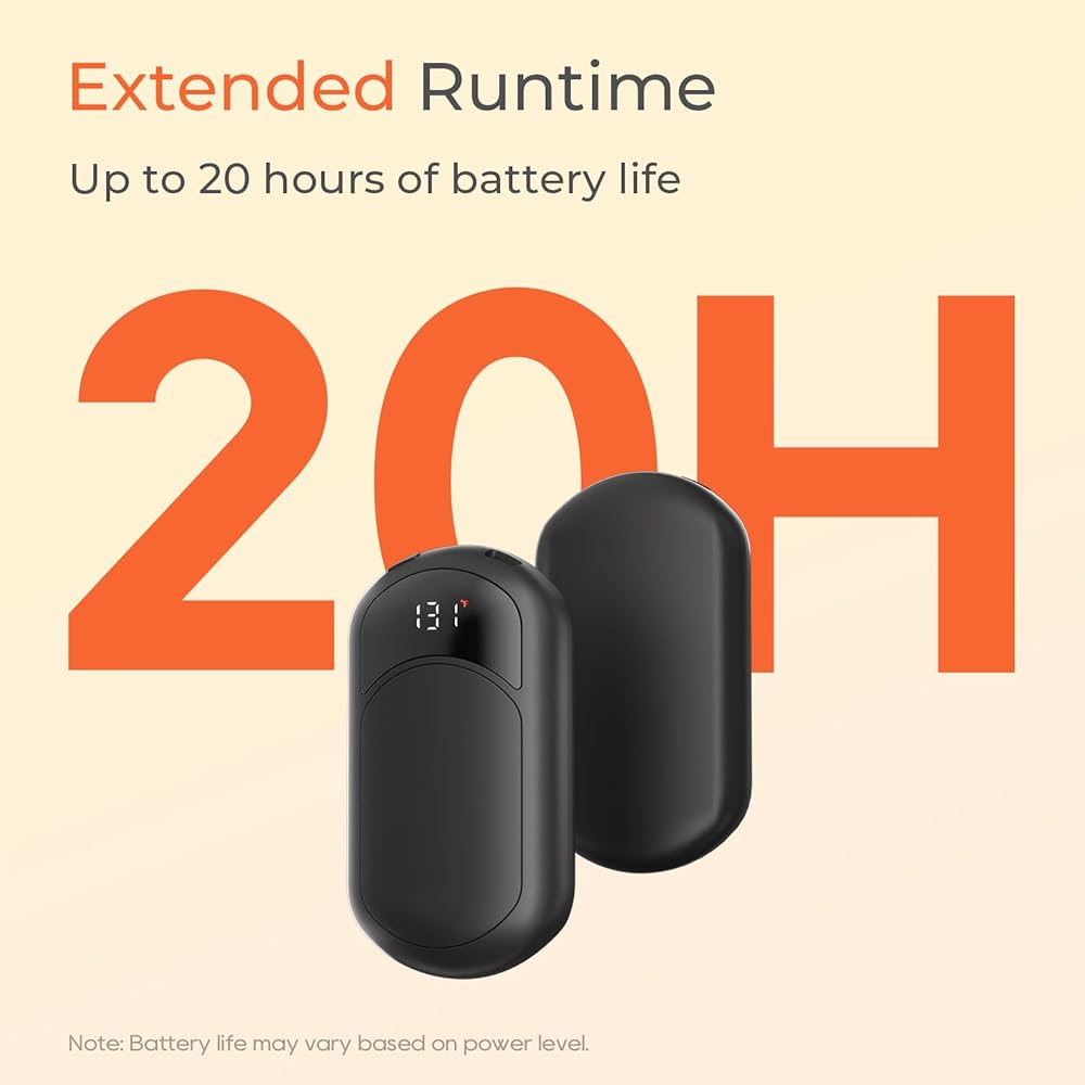 • 【تسخين لمدة ثانية واحدة وعمر بطارية طويل الأمد】 تدفئة اليدين قابلة لإعادة الشحن مع بطارية كبيرة السعة 6400mAh يمكن أن تسخن بسرعة في غضون ثانية واحدة وتوفر ما يصل إلى 20 ساعة من التدفئة المستمرة ، مما يضمن أن تظل يديك دافئة طوال اليوم.