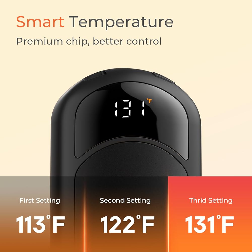 • 【العرض الرقمي LED】 يدوي اليدين الساخن يوفرون ثلاثة إعدادات درجات الحرارة ، تتراوح من 104 درجة فهرنهايت إلى 131 درجة فهرنهايت ، لتلبية احتياجاتك المخصصة للتدفئة. تعرض شاشة LED المجهزة مستوى البطارية ودرجة الحرارة في الوقت الفعلي ، مما يتيح لك تتبع حالة الجهاز والتعامل بسهولة مع مستويات البطارية المنخفضة.
