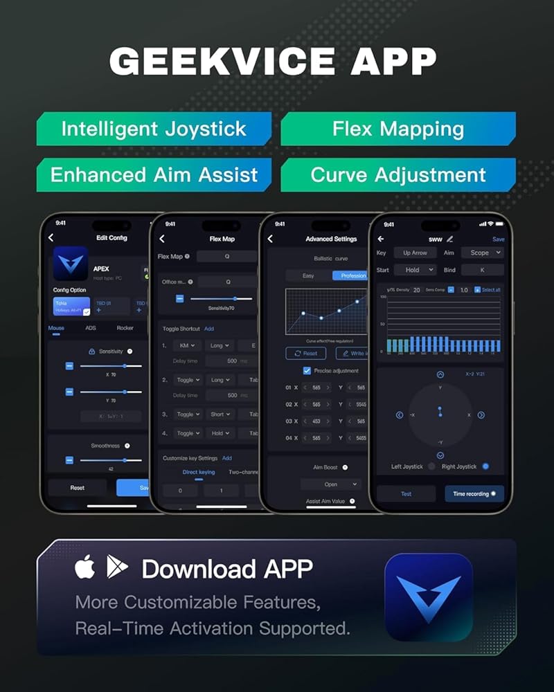 ⌨ ⌨ 【يدعم تعيين مفتاح مخصص وإعداد حساسية الماوس】 لوحة مفاتيح الكمبيوتر ومحول الماوس يدعم مفتاح DIY عبر تطبيق "Geekvice". يمكنك تعيين لوحة المفاتيح والماوس على تكوينك المفضل والمألوف وفقًا للعبة المختلفة. ⚠ يحتوي المحول على أوضاع Office and Game على حد سواء. في وضع Office ، لن تعمل وظيفة تطبيق "Geekvice" بشكل صحيح ، إذا وجدت أن لوحة المفاتيح لا تعمل بشكل صحيح في اللعبة ، يرجى التحقق مما إذا كان في وضع Office.