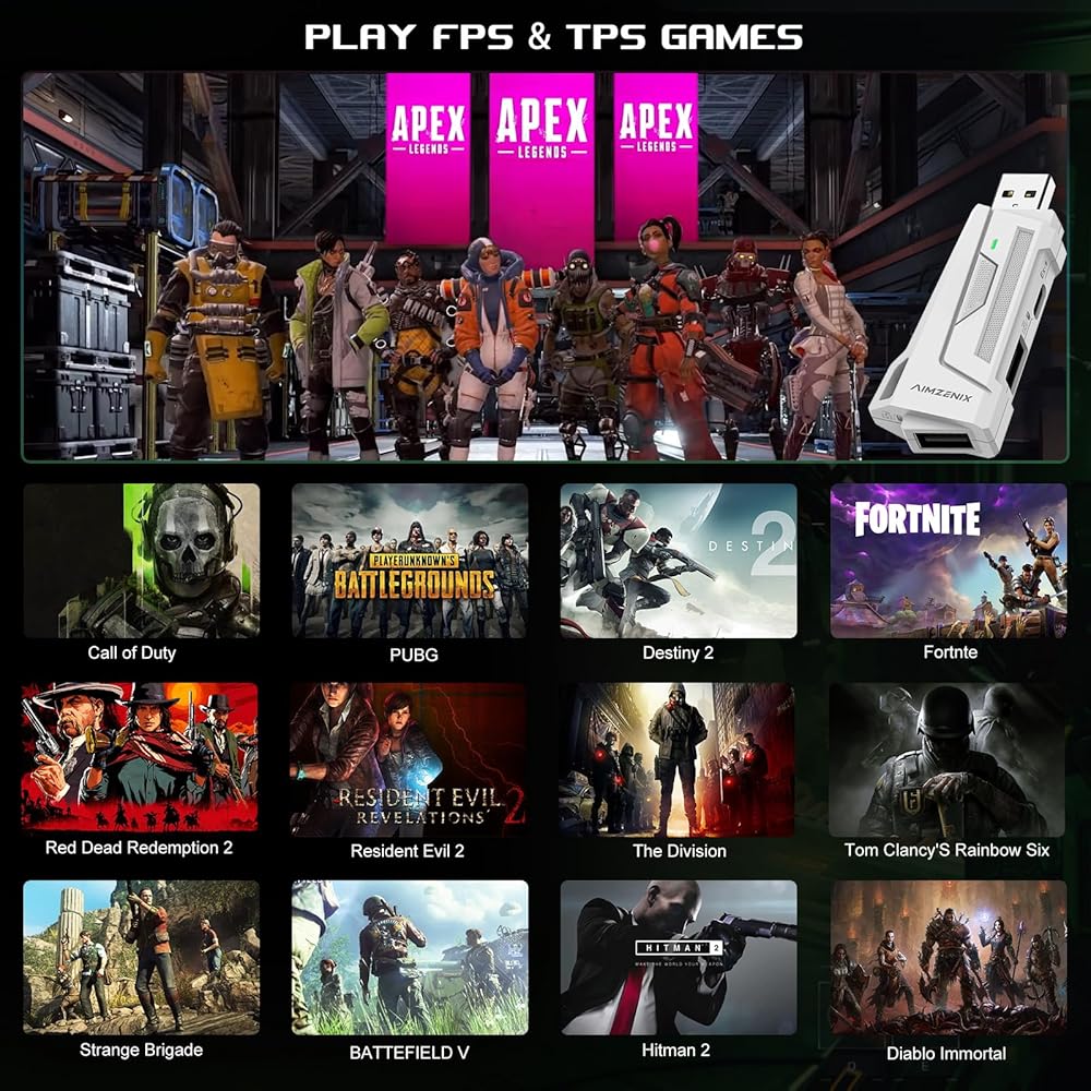 ⌨ مثالي لألعاب FPS و TPS】 يعد محول الماوس ولوحة المفاتيح مثالية لألعاب التصوير FPS & TPS. يمكنك لعب أساطير Apex و Call of Duty (COD) و Destiny 2 و Fortnte و PUBG ومعظم الألعاب في Steam.