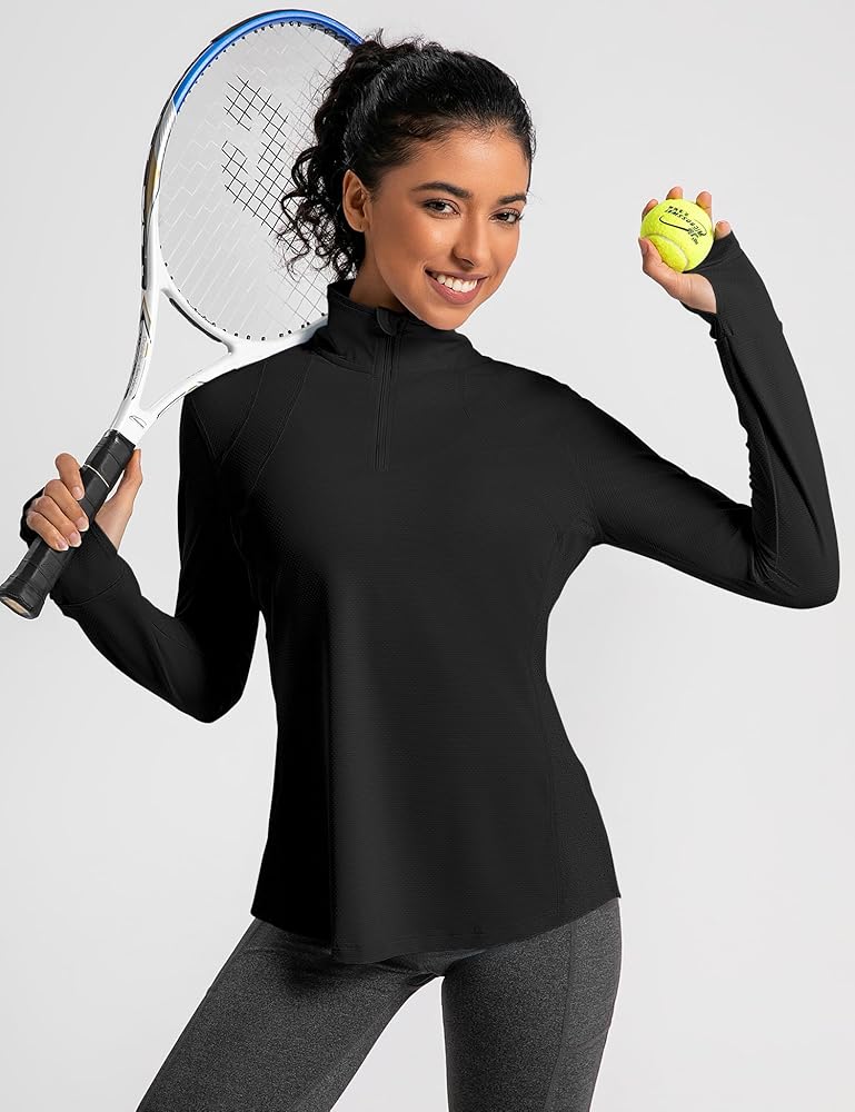 [Design]: يحتوي القميص الجاري على نوافذ ساعة خفية على الرسغ ، مما يتيح لك التحقق من الوقت أو تعقب اللياقة البدنية بسهولة أثناء ممارسة الرياضة دون الحاجة إلى سحب ثقوب الإبهام. تنحنح منحني لأسلوب غير رسمي يتزوج تمامًا مع طماق.