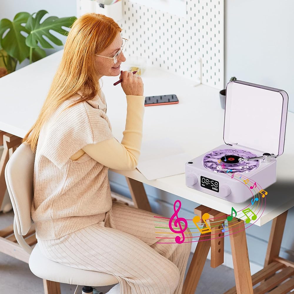 مكبر صوت بلوتوث فينيل الأمواج ، 4 أوضاع لاعب فينيل مع الأضواء المحيطة وتوقيت ، مكبر صوت بلوتوث محمول مع ضوضاء بيضاء لغرفة النوم ، المكتب ، الحفلات ، الأرجواني