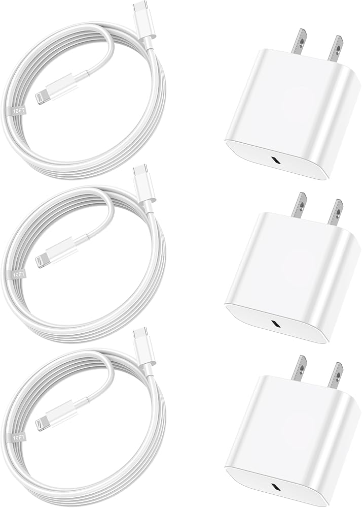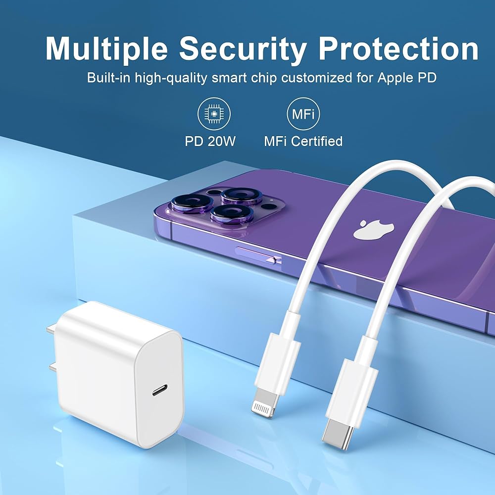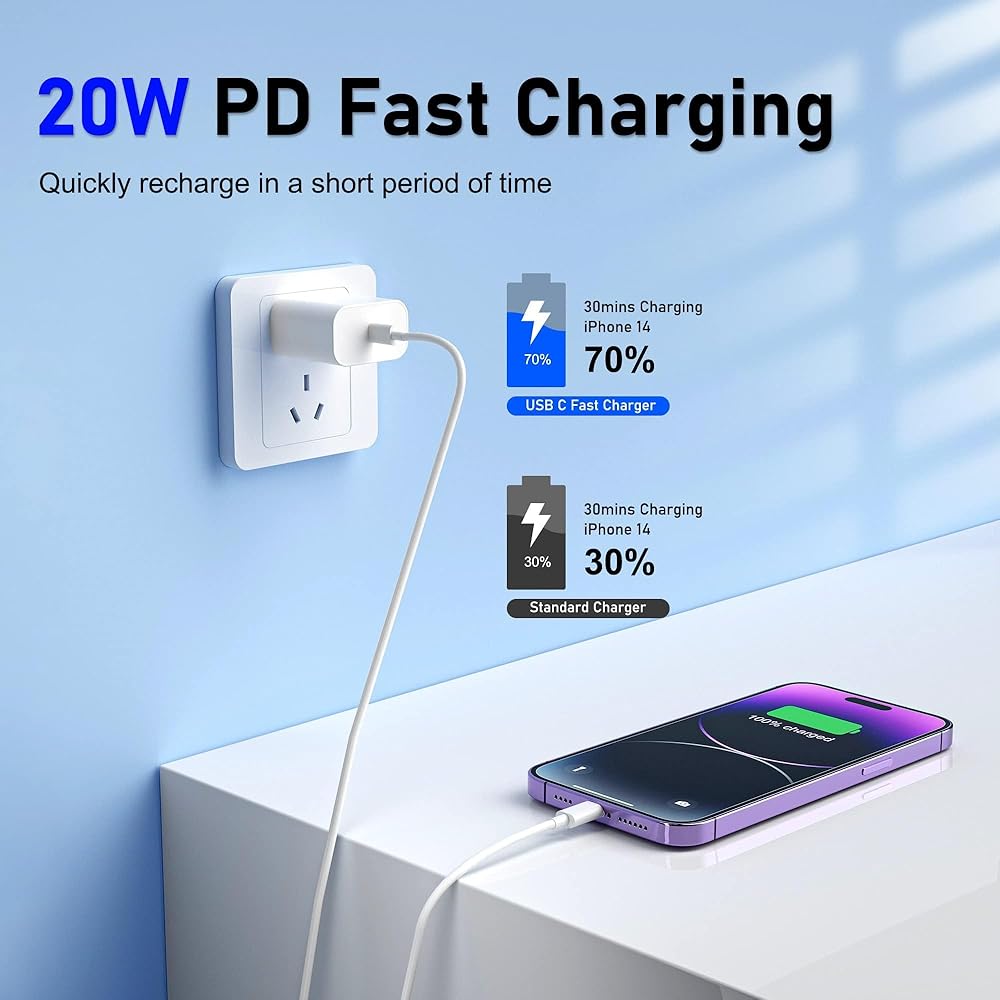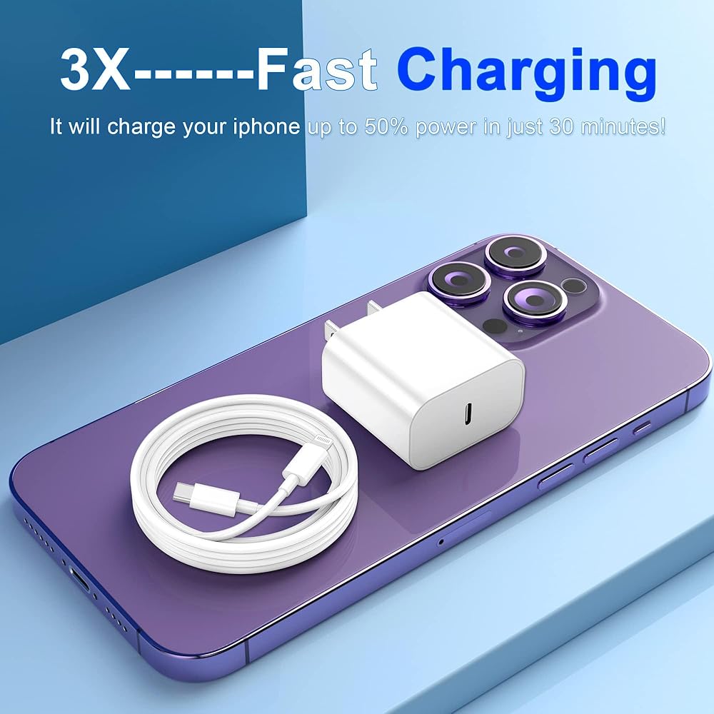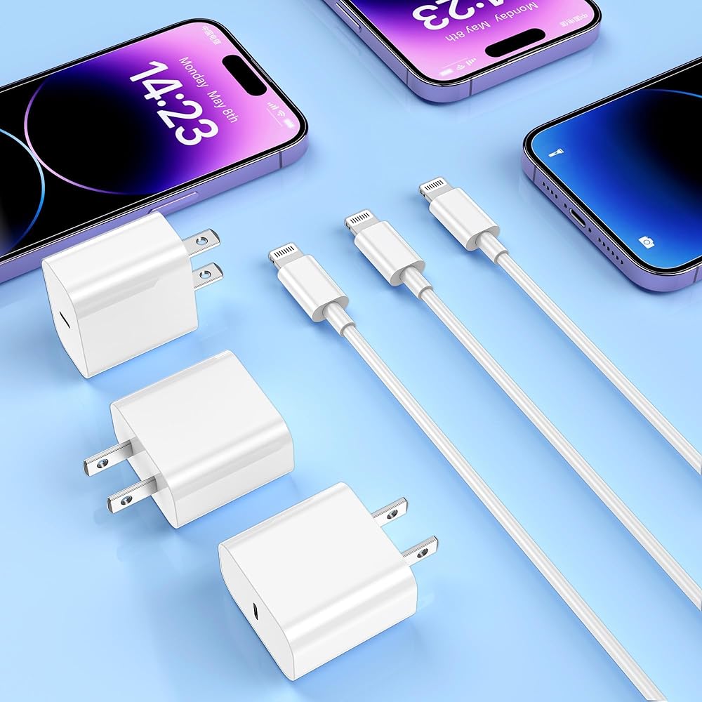 شاحن الهاتف الشحن السريع - شاحن البرق 20W ، شاحن سريع للهاتف ، شاحن سريع مع كابل البرق متوافق مع iPhone 14/13/12/11/PRO/MAX/XR/XS/X/8 (3 عبوة)