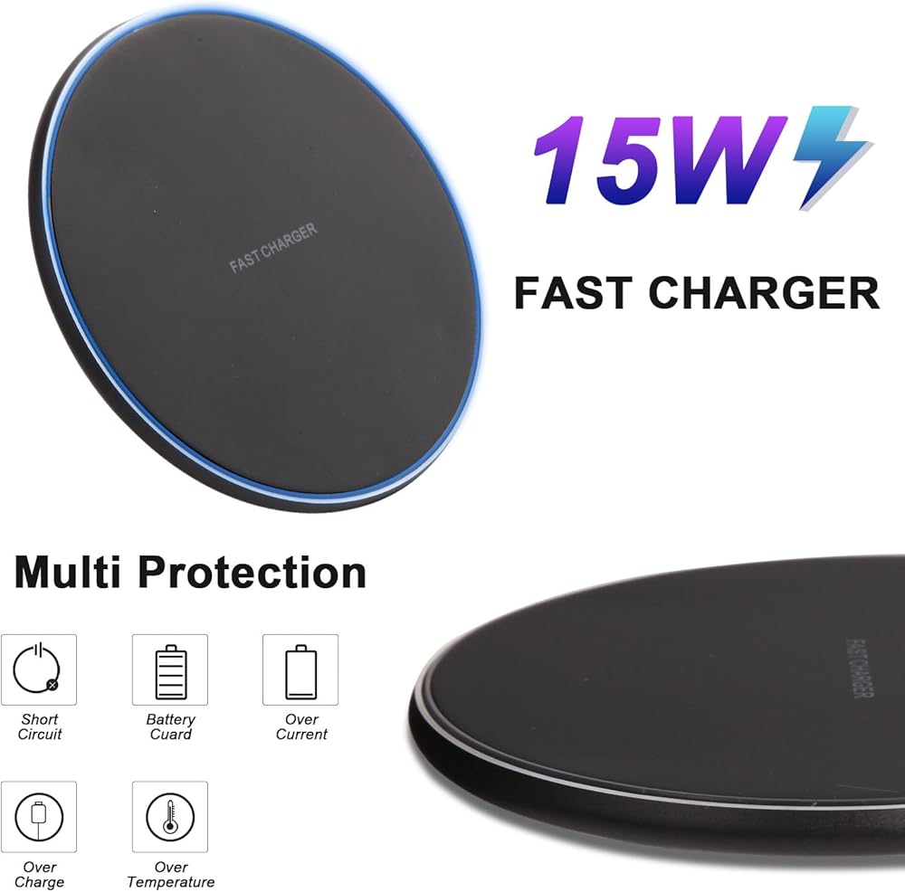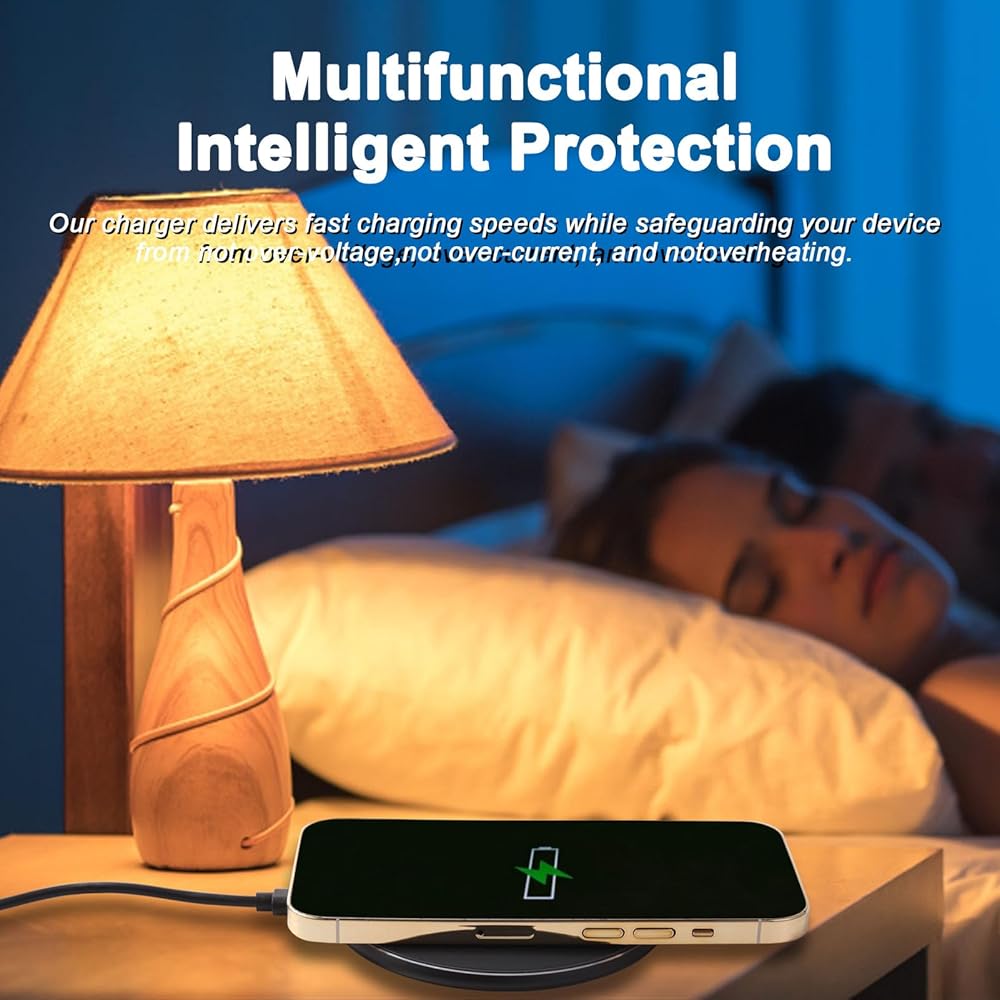 【حماية Safty متعددة】 شريحة ذكية مدمجة ، شاحن سريع 15W ، تقنيات حماية الشحن المتقدمة المتعددة الحصرية ، مثل التحكم في درجة الحرارة ، حماية الزائدة ، الحماية المفرطة في الجهد وحماية الإفراط في الشحن.