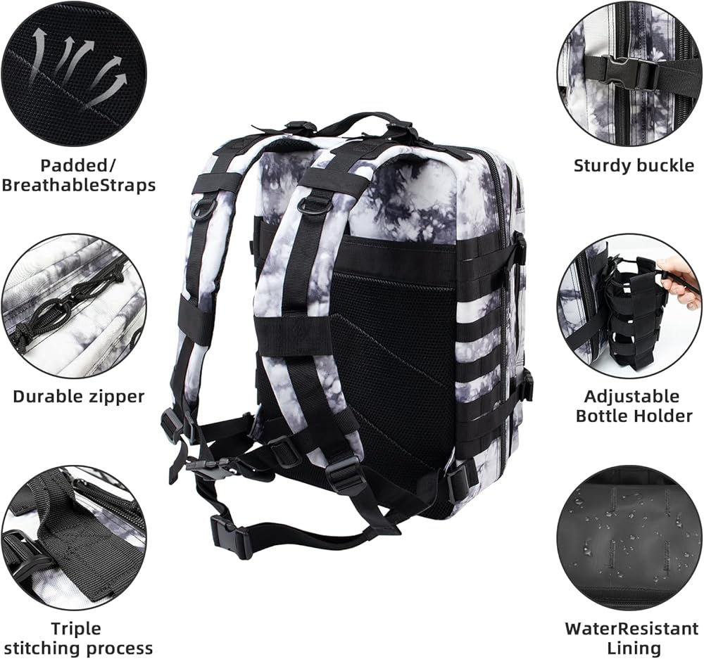 【حقيبة الظهر التكتيكية الصغيرة 25L- حقيبة الظهر التكتيكية العسكرية الحجم 15.75 "× 11.4" × 8 "، الوزن: 1.98 رطل ، يمكن أن تتكشف حقيبة الظهر 90-180 درجة ، ويمكن استخدامها كمعدات سفر لتخزينها ، وركوب الدراجات ، أو السفر ، أو الصيد ، أو كحصول عمل يومية ومجموعة من المعدات الأولى ، يمكن أن تلبي هذه المعدات التكتيكية.