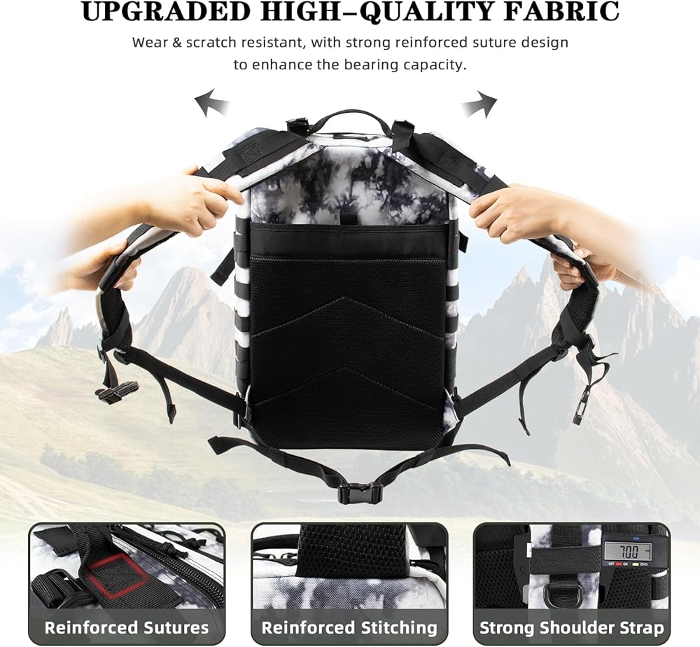 【حقيبة ظهر فريدة من نوعها】-حقيبة الظهر التكتيكية مصنوعة من مواد قطعة قماش عالية الكثافة عالية الكثافة في أكسفورد ، مقترنة بسحاب شاق ، تزيد عملية الغرز الثلاثي بشكل كبير من متانة حقيبة الظهر ويمكن أن تحمل المزيد من العناصر. إن دعم الشبكة المبسطة ، استنادًا إلى التصميم المريح ، له قوة موحدة ولن يكون متعبًا لفترة طويلة لحمله ، يمكن للحزام (طول قابل للتعديل) أن يحتفظ بالحزمة بشكل أفضل.