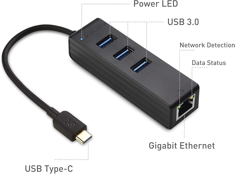 - يتضمن أيضًا مركز USB C Ethernet مزدوج الوظيفة ، والذي يضيف محول Ethernet و 3 منافذ USB إلى جهاز عبر USB-C.