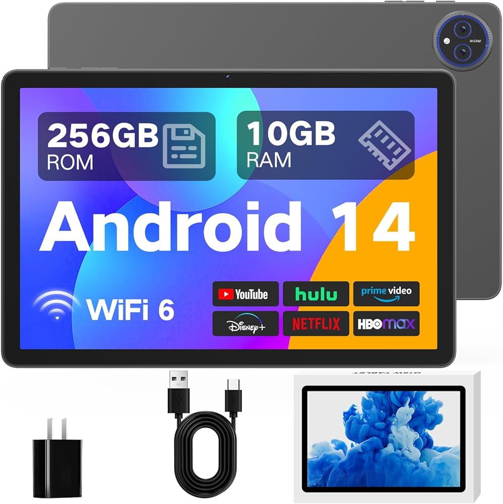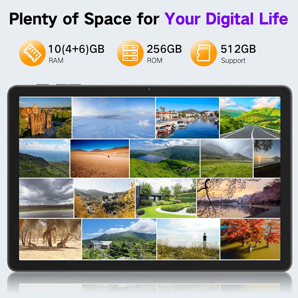 【جهاز Android 14 tablet فائق السرعة مع ذاكرة وصول عشوائي 10 جيجابايت وذاكرة وصول أو ثمان النواة】 تجربة سرعة 2025 مع جهاز Android 11 "Android 14 Tablet. مدعوم من معالج ثماني النواة أو ما يصل إلى 10 جيجا بايت رام (6 جيجا بايت + 4 جيجا بايت) ، فإنه يوفر مهام متعددة السلس ما إذا كنت تعمل ، أو العمل ، أو التعلم. في حين أن مكبرات الصوت المزدوجة تصنع صوت ستيريو غامرة. مع سعة تخزين داخلية 256 جيجابايت (قابلة للتوسيع إلى 512 جيجابايت) ، سيكون لديك مساحة لكل شيء من مقاطع الفيديو إلى المشاريع المدرسية.