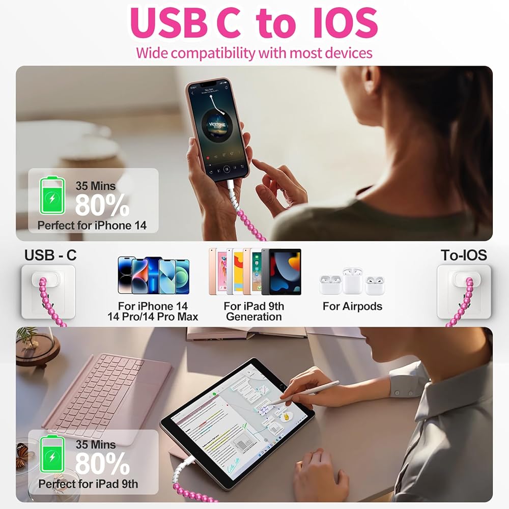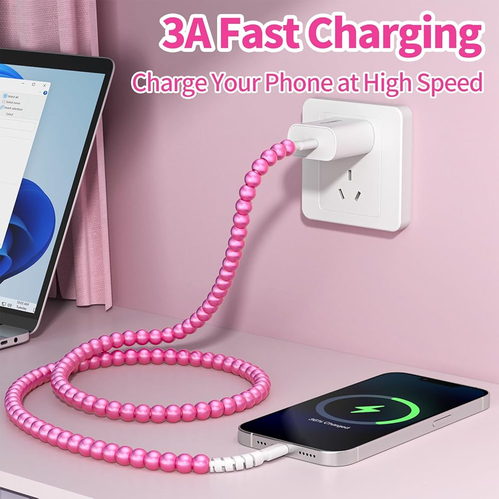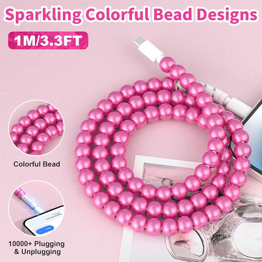 التوافق الواسع: هذه الخرزات الأنيقة لؤلؤة شحن كابل متوافق مع مجموعة متنوعة من أجهزة iOS. متوافق مع iPhone 14/14 Pro/14 Pro Max ، لـ iPhone 13/13 Pro/13 Pro Max ، لـ iPhone 11/21/XS/XR/8/7 ، لجيل iPad 9th/8/7/6th ، إلخ.