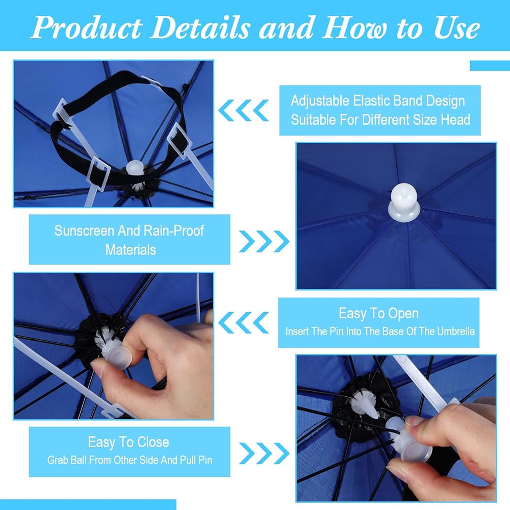 مصنوع من أجل الراحة: كن مثالًا للتسوية مع قبعة مظلة الرأس التي تم تصميمها من البلاستيك القوي التي تضمن طول العمر والمتانة ؛ يوفر لك حلًا ذكيًا وعمليًا ، مما يضمن أن تكون يديك مجانية للمهام الأخرى ، سواء كانت تحمل قضيب صيد أو شرب مشروب أو احتضان أحبائك