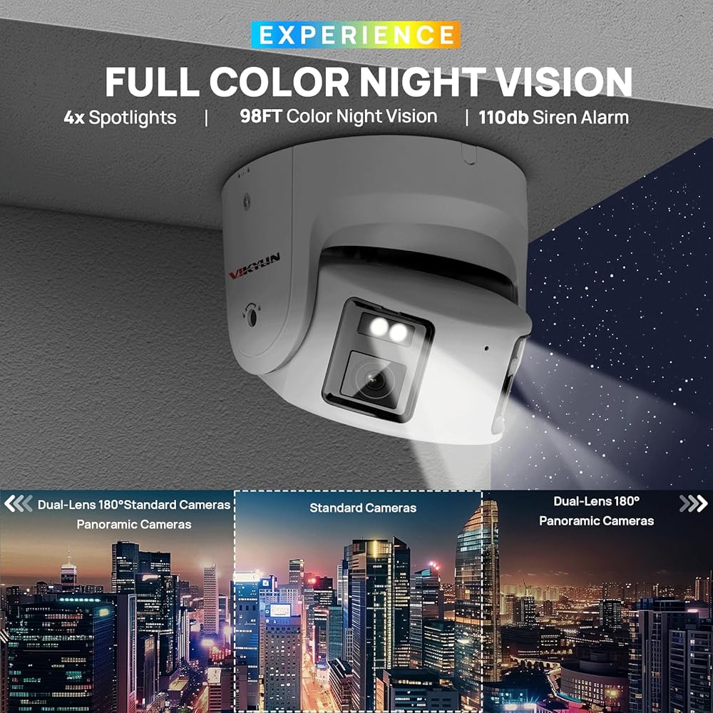 【UHD 8MP دقة وضوء مزدوج ذكي】 هذه كاميرا أمان IP البانورامية التي تبلغ 8 ميجابكسل لديها تصوير رائع بدقة 8 ميجابكسل ، كحد أقصى. دقة 20 إطارًا في الثانية@4096 × 1944p. وقد اتخذت كاميرا IP المتقدمة 8MP هذه تقنية الألوان الكاملة ، ويمكن أن تعزز التصوير بالألوان في ظروف الإضاءة المنخفضة أو في الليل. تعتمد تقنية Smart Dual Light الخوارزمية الذكية للكشف عن الأهداف. عادة ، عندما لا تتحرك أي أشياء بشرية ، يتم الحفاظ على الرؤية الليلية بالأشعة تحت الحمراء والأسود. عند اكتشاف الحركة البشرية ، ستضيء مصابيح LED الإضاءة الدافئة ، وسيتم تحويل الشاشة على الفور إلى رؤية ليلية كاملة اللون ، وفقًا لتفضيلاتك الخاصة ، اختر مصدر الضوء الذي يناسبك.