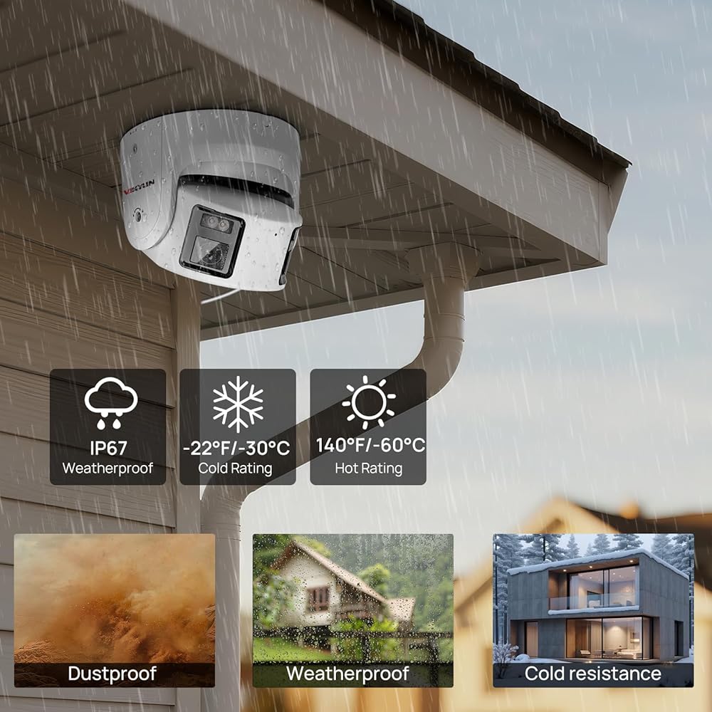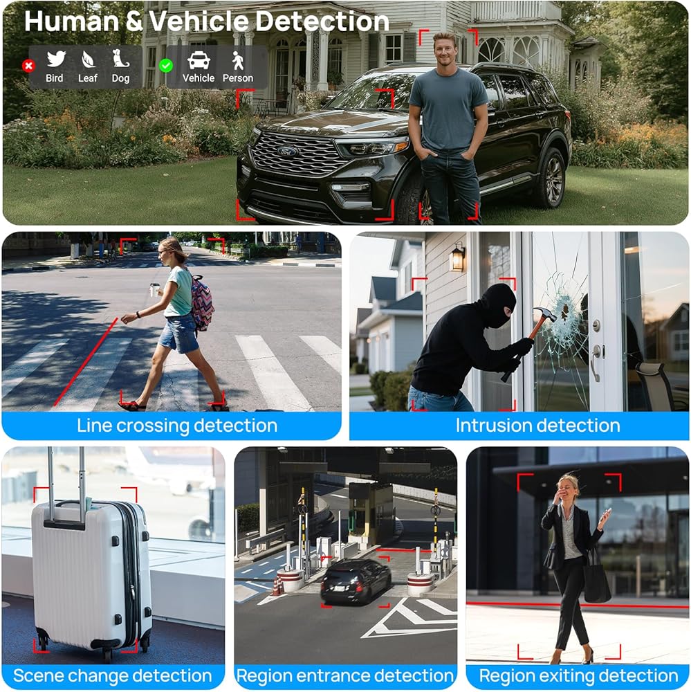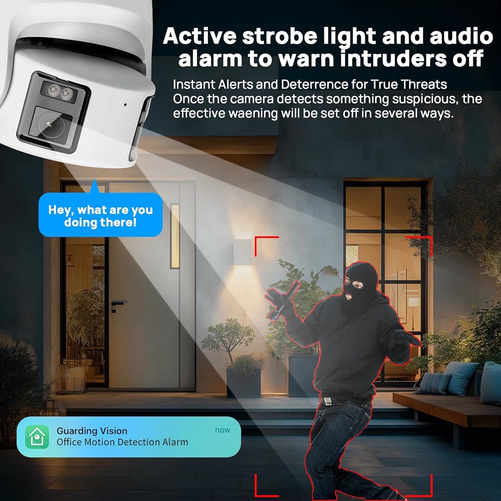 【الاكتشاف الذكي والصوت ثنائي الاتجاه】 كاميرا Poe IP البانورامية 4K استنادًا إلى التعلم العميق والتركيز على الهوية البشرية لمنع الإنذارات غير الدقيقة وغير الضرورية عن طريق نقل الأشياء مثل الحيوانات أو الأوراق المتساقطة. وهذا يساعدك على التركيز على حوادث الأمان الحقيقية ، وتقليل الإنذارات الخاطئة. تتيح لك كاميرا أمن العدسات المزدوجة 4K مع مكبر الصوت والميكروفون ، والتحدث مع الآخرين أو تحذير الزوار غير الوديين أثناء مشاهدة البث المباشر ، ومنع خسائر الممتلكات وتحسين السلامة. عند اكتشاف الحركة ، ستحصل على إشعارات في الوقت الفعلي.