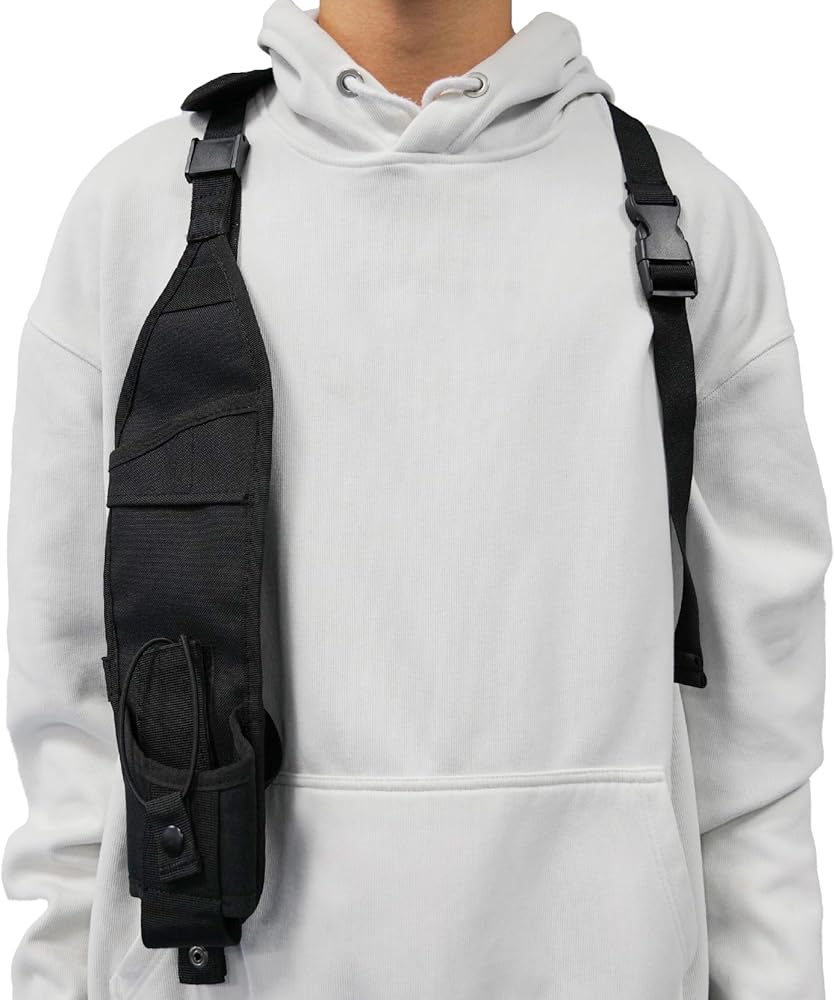 KUNN Universal Right Side Radio Shoulder Harness Holster ,Black+ Right Side Radio Shoulder Harness Holster with Reflective Pocket