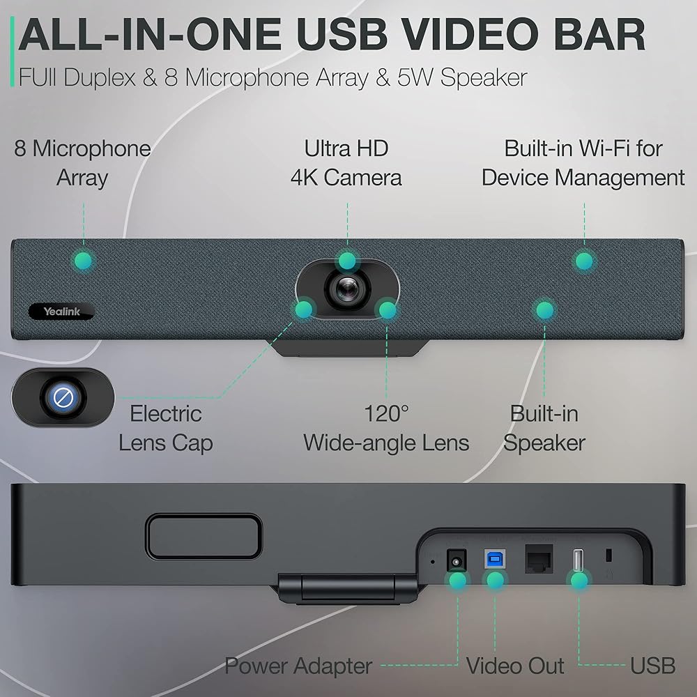 تجربة صوتية أفضل: كاميرا الفيديو هذه UVC34 مدمجة 8 فاكهة كاملة وضوضاء إلغاء ميكروفونات الصفيف قمع صوت الخلفية بحيث يمكن سماع الجميع في المحادثة بوضوح. ولديه مكبر صوت 5W لصوت عالي الدقة. الكل في واحدة مصممة لجلب تجربة صوتية أفضل لغرف المؤتمرات الصغيرة والتجمع.