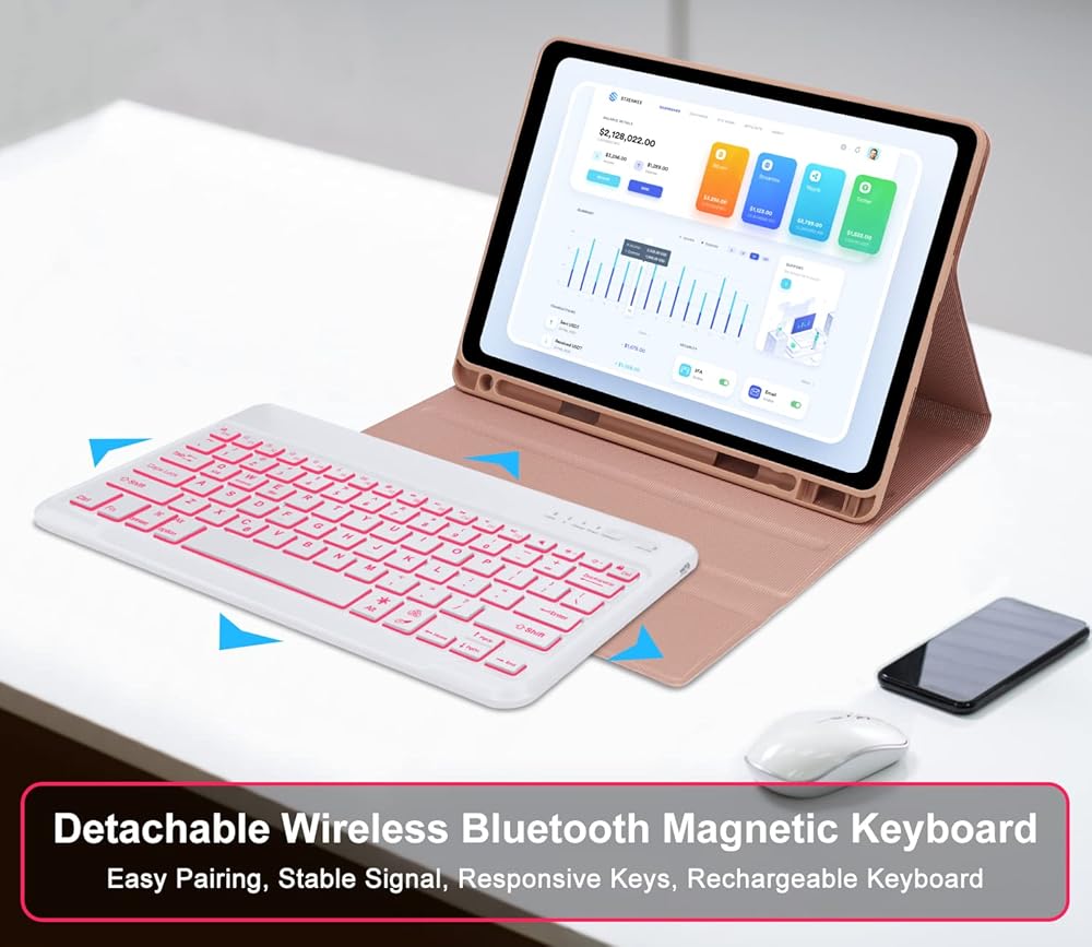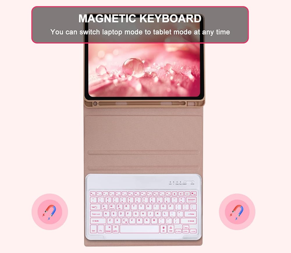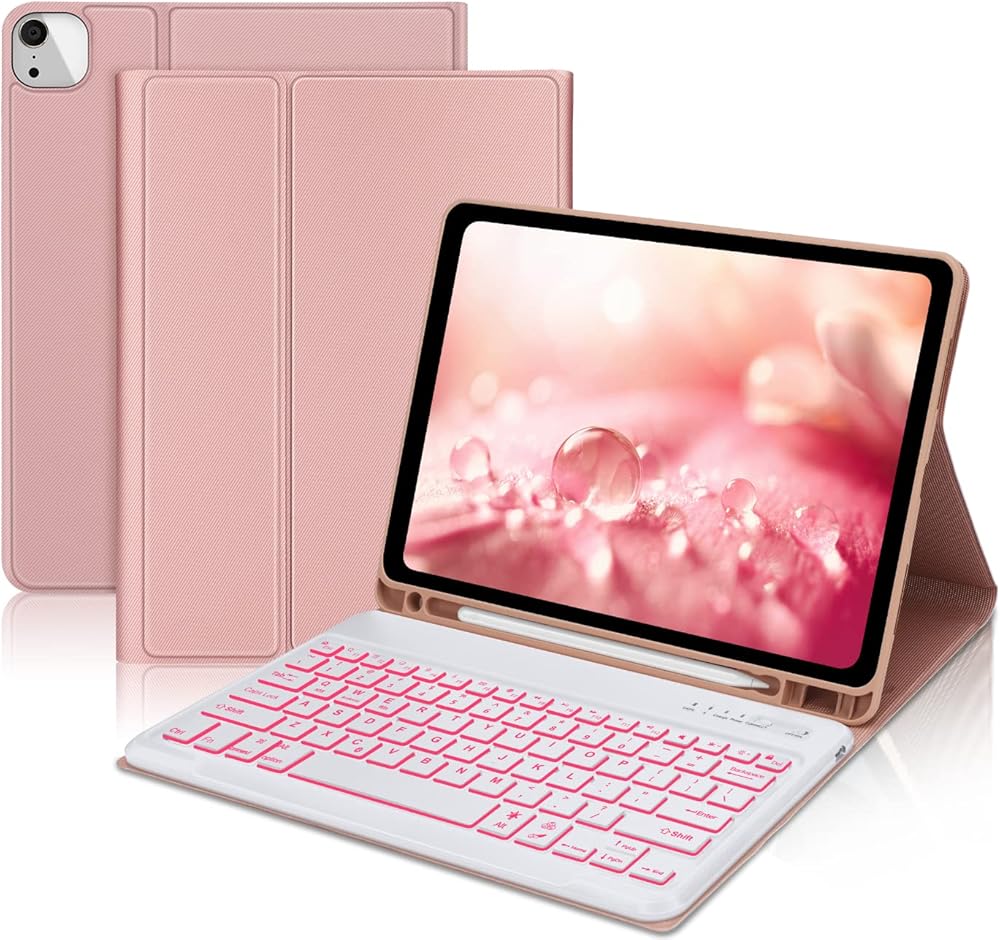 حافظة iPad Pro 12.9 مع لوحة مفاتيح، حافظة iPad 12.9 Pro مع لوحة مفاتيح لجهاز iPad Pro مقاس 12.9 بوصة (الجيل السادس/الخامس/الجيل الرابع/الجيل الثالث)، لوحة مفاتيح بإضاءة خلفية قابلة للفصل مع حامل أقلام، غطاء فوليو ذكي، وردي