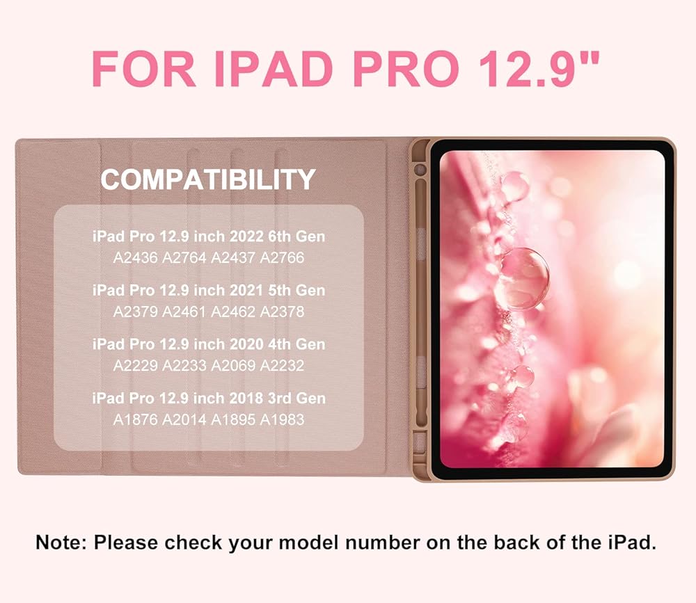 【Compatible Designs】The case with keyboard is compatible with iPad Pro 12.9 2022 6th Generation (A2436, A2437, A2764, A2766), iPad Pro 12.9 2021 5th Generation (A2378, A2379, A2461, A2462), iPad Pro 12.9 2020 4th Generation (A2229, A2069, A2232, A2233), and iPad Pro 12.9 2018 3rd Gen (A1876, A2014, A1895, A1983).Warmly Note: Please check the model number on the back of your iPad before purchasing.