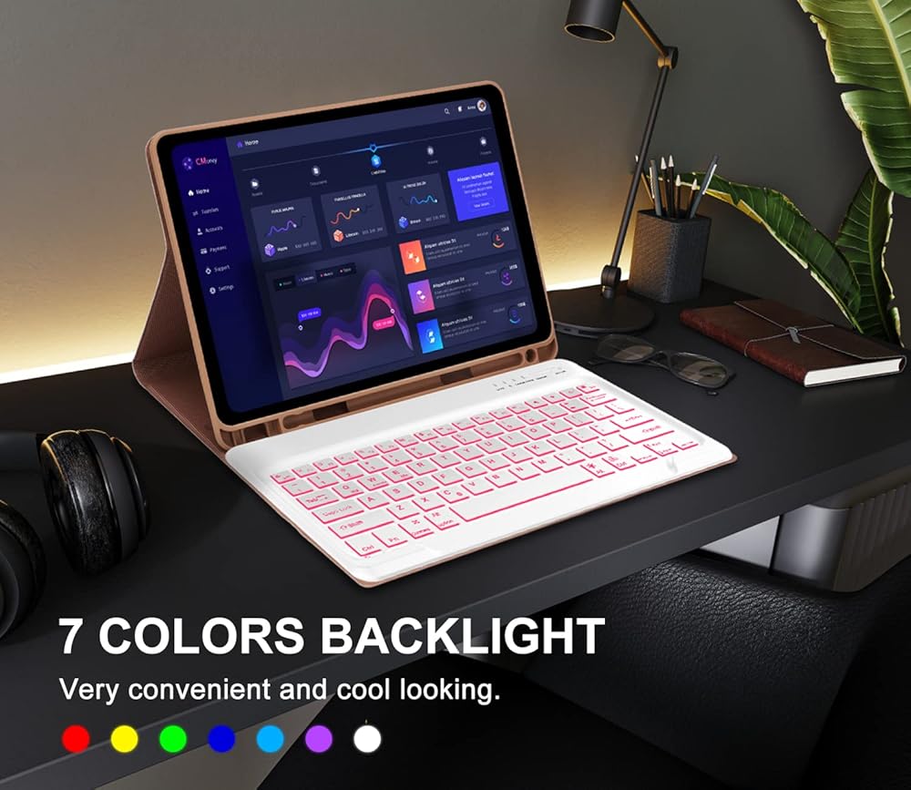 【7 Color Backlight and 3 Levels of Brightness】This ipad pro 12.9 case with keyboard has 7 colors of backlight and 3 levels for turning on the backlight and adjusting the brightness level. Soft backlighting allows you to see all the keys and improve your productivity at night. Makes typing more fun.