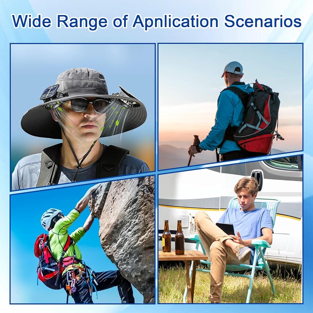 • وظائف القوة المزدوجة - احتضان مزيجًا مثاليًا من الطبيعة والتكنولوجيا! لا تسخر قبعتنا من الطاقة الشمسية فحسب ، بل تتميز أيضًا بواجهة شحن ، مما يتيح لك الاستمتاع براحة التكنولوجيا الحديثة أثناء التشمس في الهواء الطلق الرائع.
