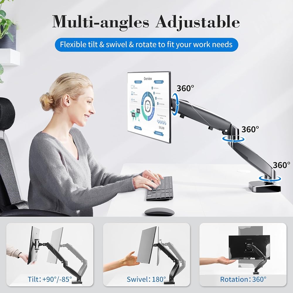 • عزز راحة المشاهدة الخاصة بك: قل وداعًا للرقبة والخلفية مع ذراع MOUNT المفردة القابلة للتعديل. ضع شاشتك دون عناء في الطول المثالي ، مما يجعلها أقرب إلى مستوى العين. تتيح لك آلية نابض الغاز تمديد الشاشة حتى 20.5 بوصة ورفعها 15.6 بوصة فوق مكتبك لتجربة مريحة خالية من الإجهاد.