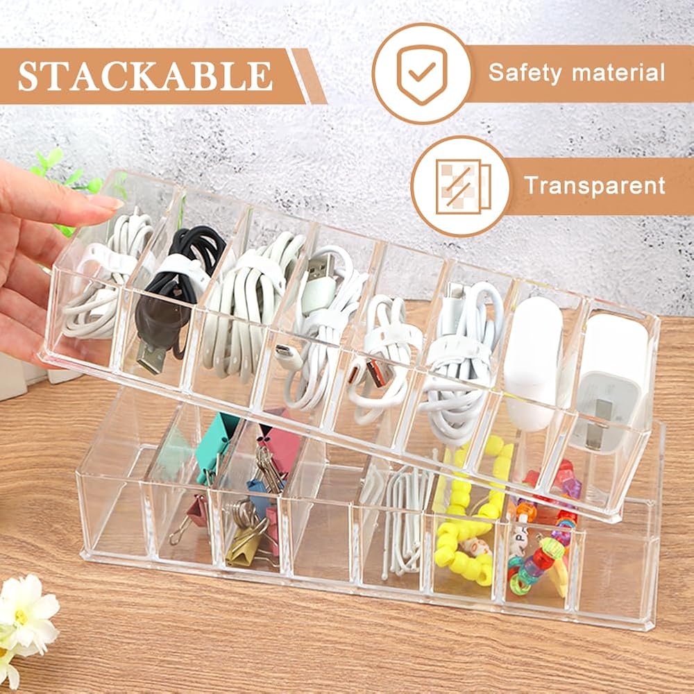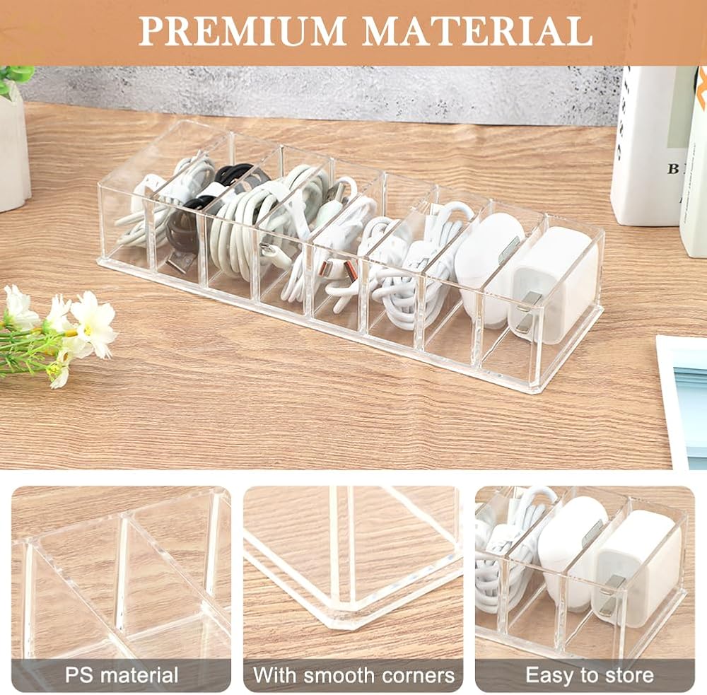 【8 COMPARTMENT DESIGN】8 cells are enough for you to storage the charging cable, you can also put the charging head and Bluetooth headset.Each compartment can accommodate 2-3 cables, making it easy to carry. Enough to meet your daily needs and keep your desktop clean and tidy.