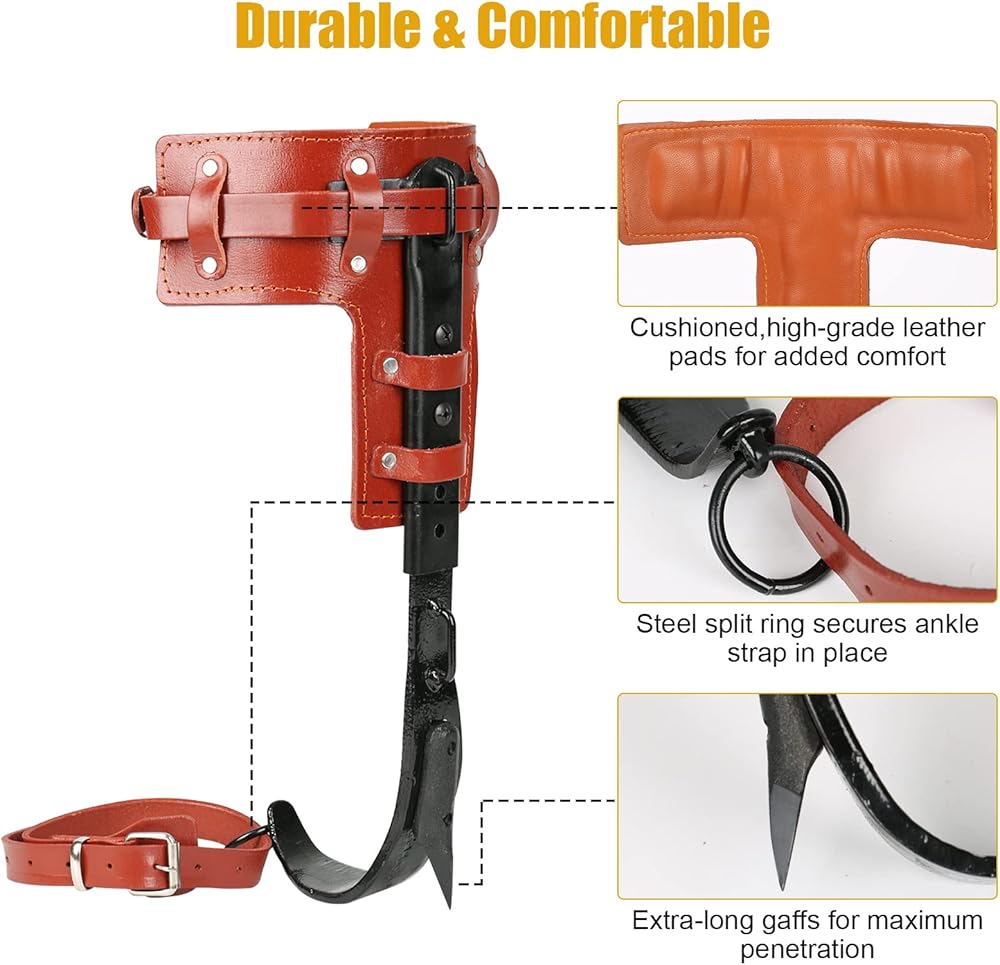 سهلة الاستخدام - أداة تسلق الأشجار مضغوطة وخفيفة الوزن ، مما يجعل من السهل حملها والتعامل معها وتوضيحها وإقلاعها. يحمل حلقة المقسمة الصلب حزام الكاحل في مكانه ، لذا من السهل إدخاله في مجموعة متنوعة من الأشجار. مزودة بحزام لتسلق الأشجار الأكثر أمانًا.