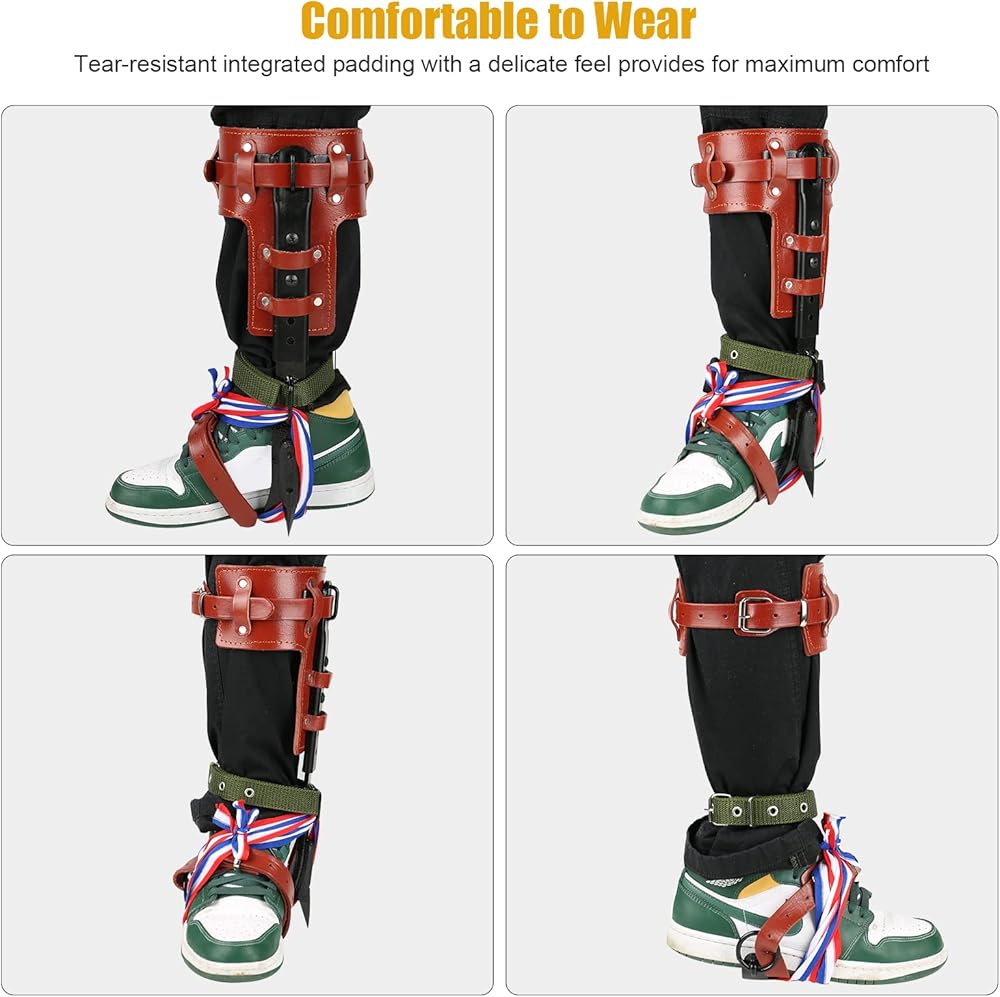 مواد آمنة-تحتوي مجموعة أدوات تسلق الأشجار على مخالب من الفولاذ المقاوم للصدأ الحادة والمتشددة والأدوات غير القابلة للانزلاق لتسلق الأشجار الآمن. يوزع البناء المريح الضغط ويناسب بنية القدم لإبقائك أكثر راحة عند تسلق الأشجار.