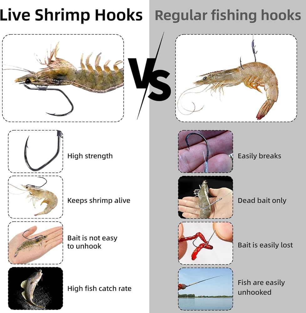 السنانير الروبيان الحية التي تبقي الطعم على قيد الحياة: تصميم خطافات الروبيان المتخصصة (متوافق مع الروبيان ووكر 2) يحمل الروبيان الحي دون إصابة. يجذب حركة السباحة الطبيعية Snook ، Tarpon ، Redfish - مثالي لصيد الأسماك في المياه المالحة أو خطافات صيد الجهير.