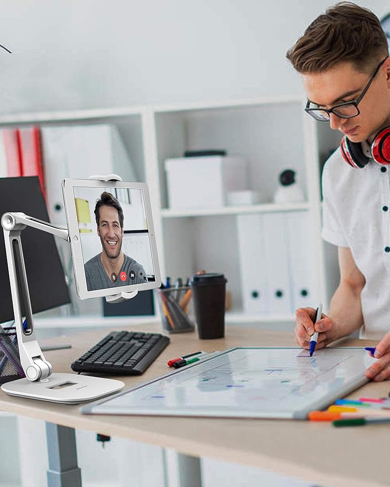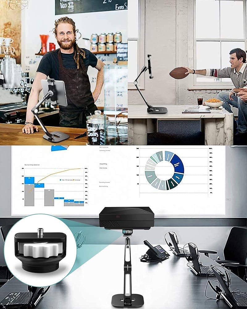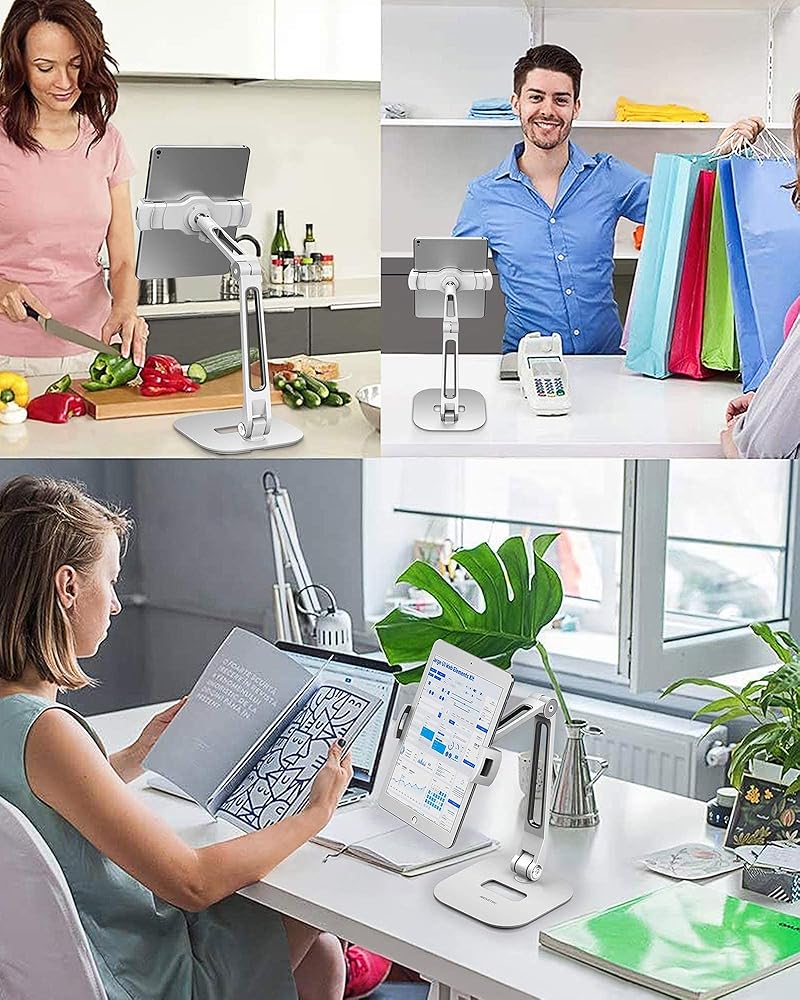 • تشكل قاعدة المعادن والذراع القوية والشاقة هيكلًا صارمًا للغاية للحفاظ على مختلف الأجهزة اللوحية والهواتف مع ارتفاع يصل إلى 1.3 قدم لتحسين وضع الوضع والفتحة. متعددة المهام كشاشة مزدوجة الشاشة على سطح المكتب لسطح المكتب وتسجيل نقطة بيع الأعمال التجارية ، إلخ.