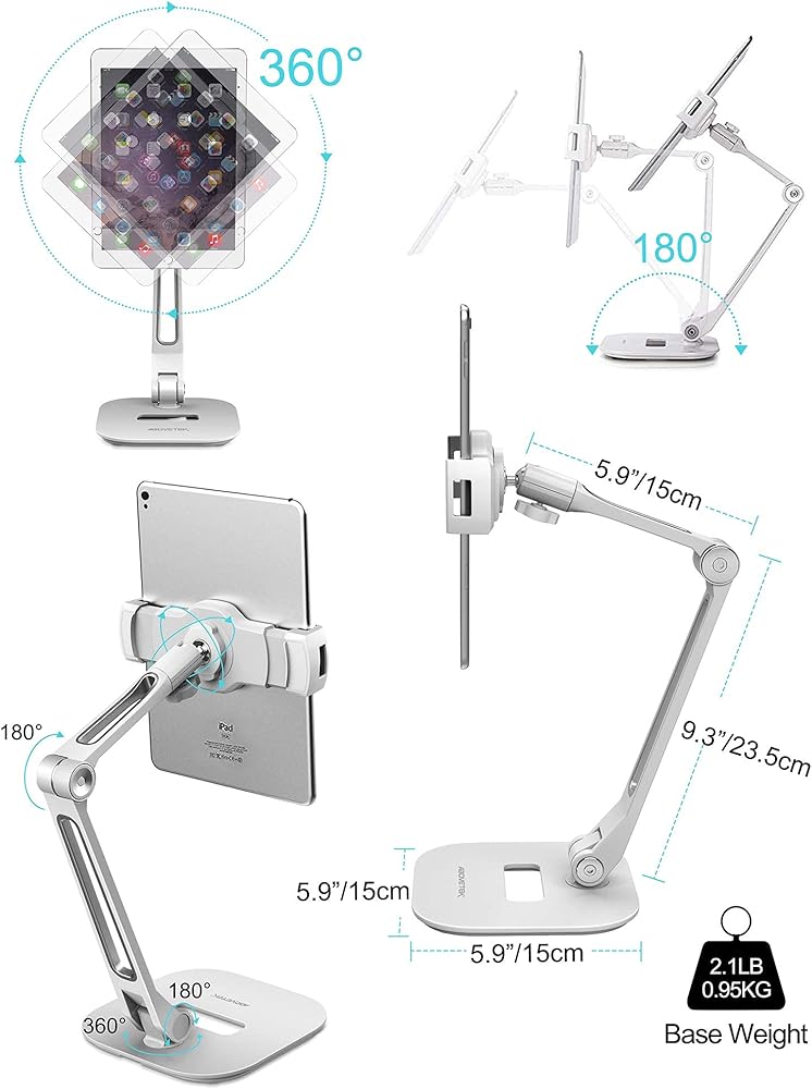 Abovetek Long Arm Aluminium Tablet Stand ، حامل iPad القابل للطي مع حامل MOTEL CLAMP IPHIVE 360 ° IPHIVE