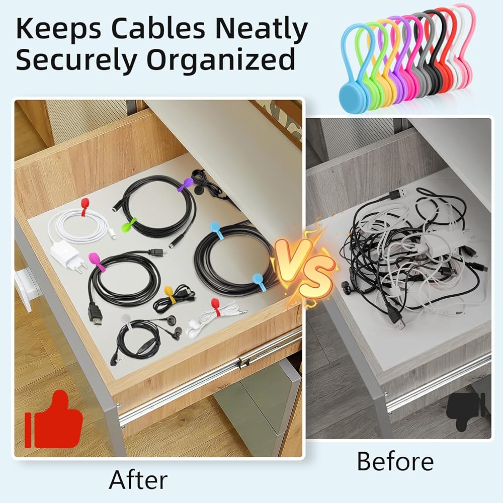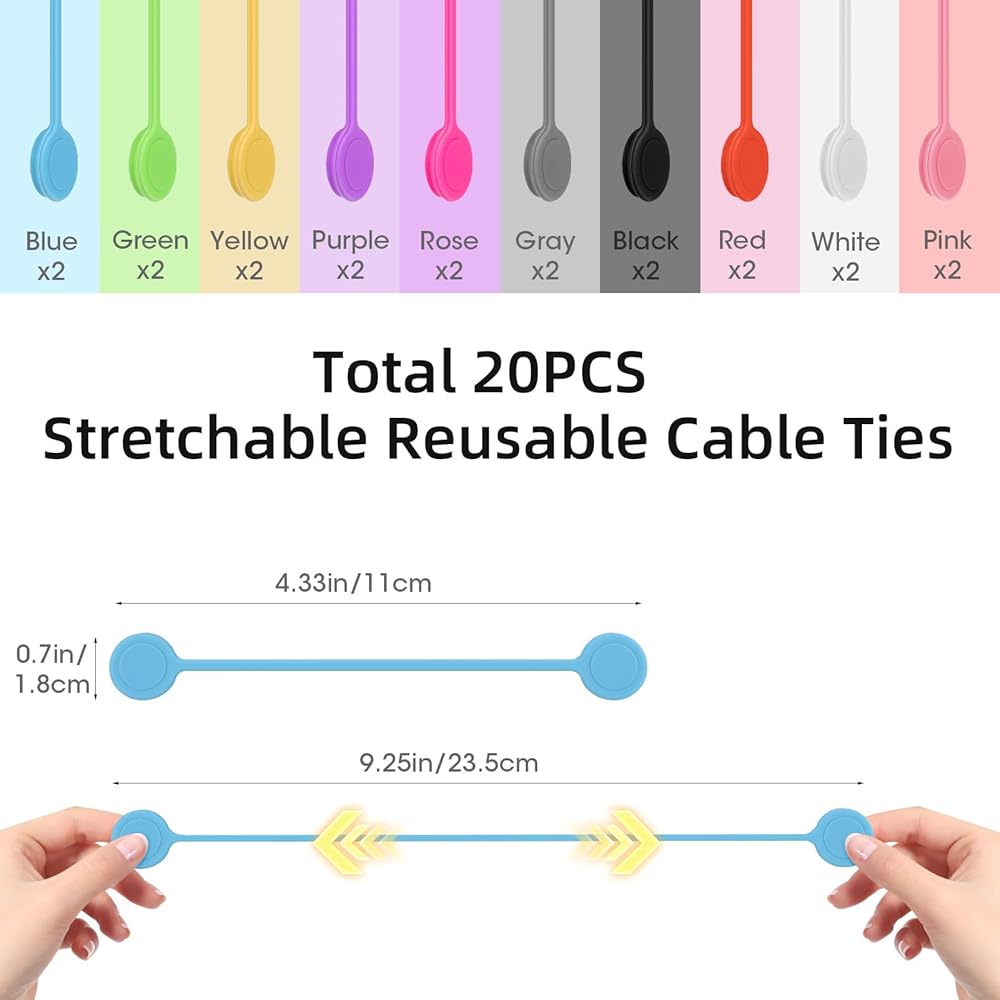 20 PCS magnetic cable ties in 10 colors, fully meet the needs of daily use and replacement, and help you store various cables more neatly.