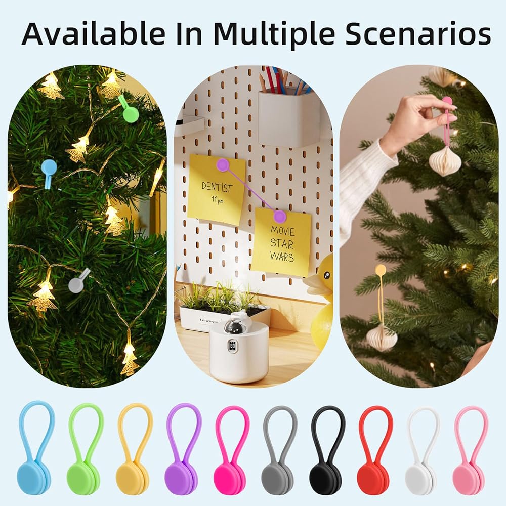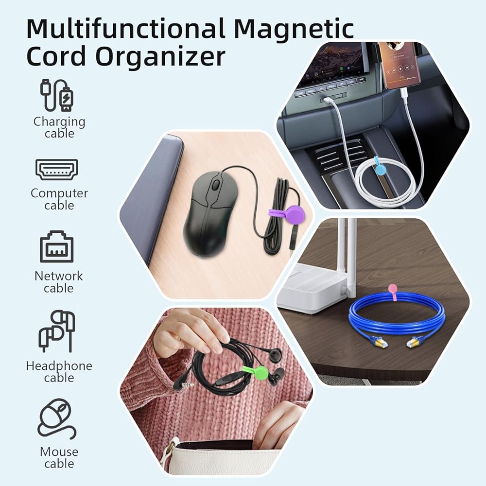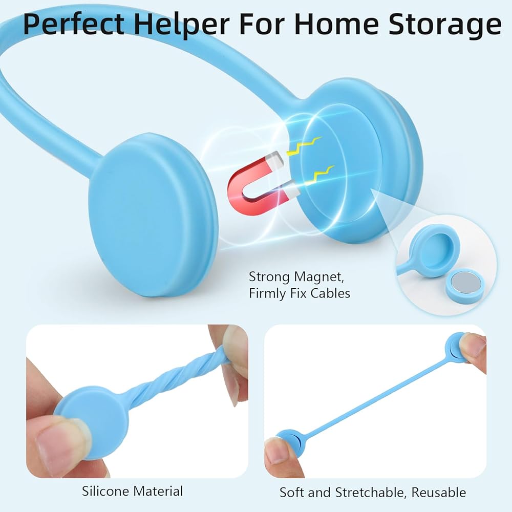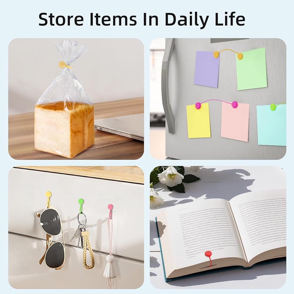 Diverse Applicability: can be used to store wires, headphone cables, charging cables, network cables, etc., and can also be used as refrigerator magnets, key chains, book clips, curtain bindings, packaging bag seals, etc.