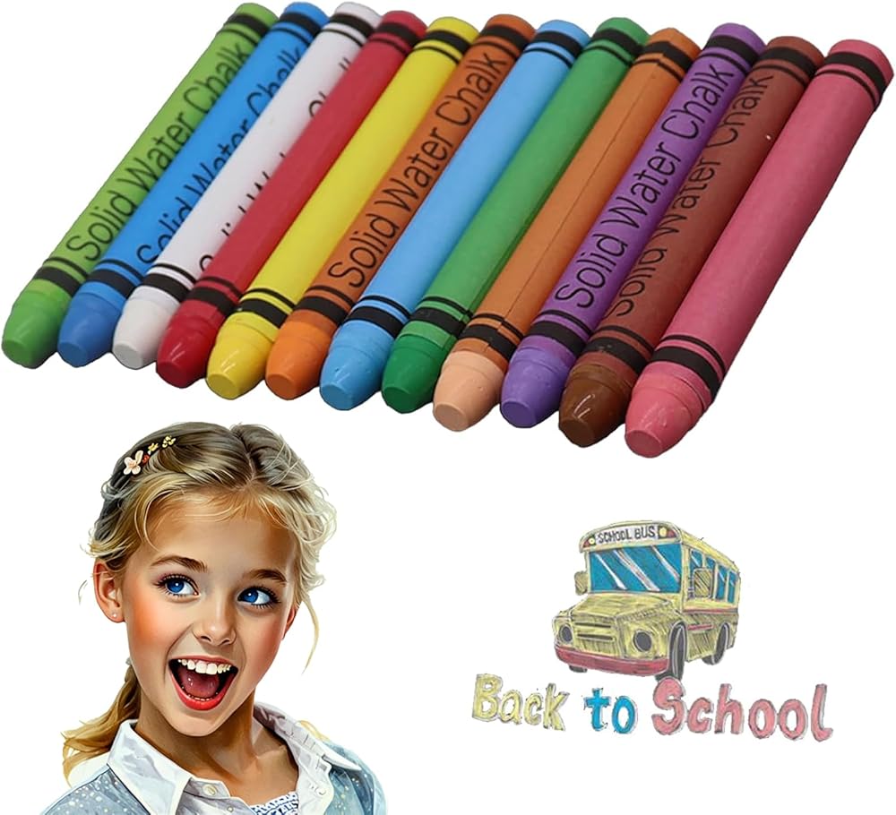 مجموعة طباشير سايد ووك - قلم تلوين ملون صلب قابل للذوبان في الماء، دزينة بألوان مختلفة، قلم تلوين واحد يساوي 10 طباشير عادية.