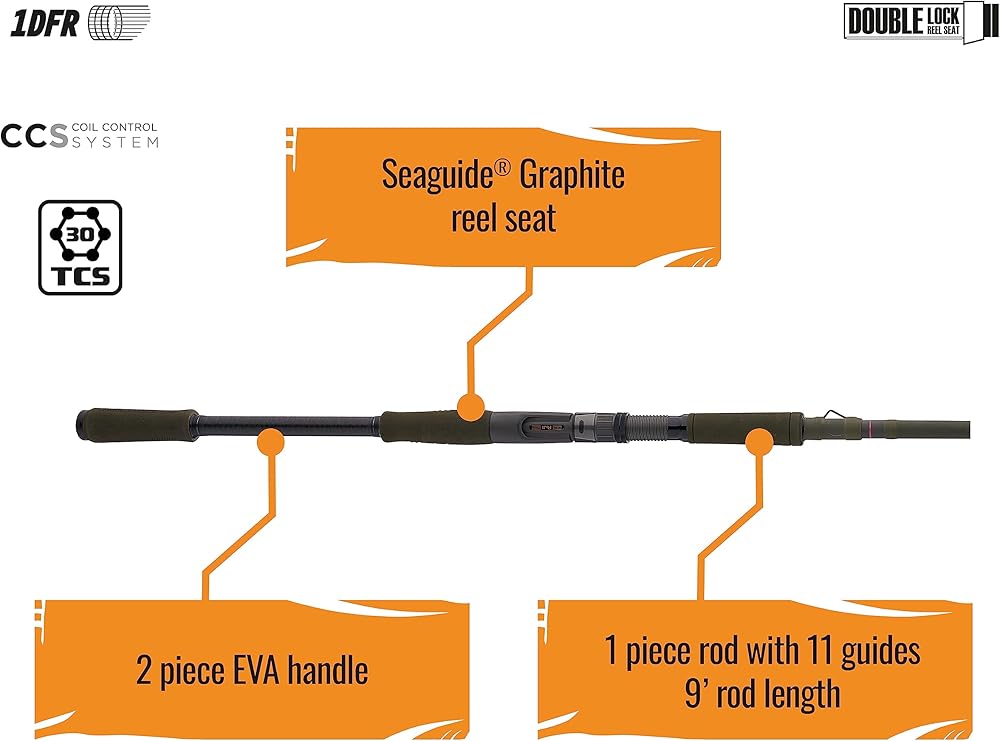 11 SEAGUIDES: Durable stainless steel guides with SiC inserts ensure smooth line management and reduced friction on every cast and retrieve.