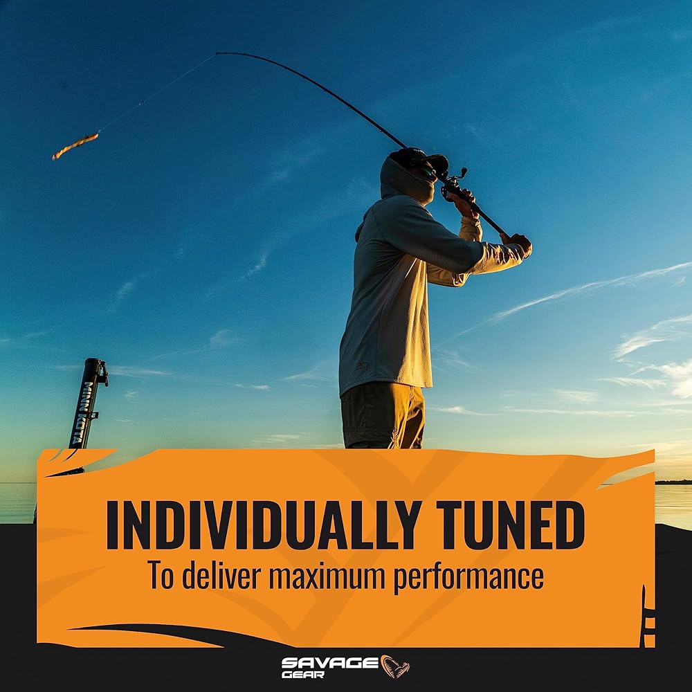 While designed to meet the demands that serious Musky fishermen place on their rods, Savage Gear's Battletek Musky series offer the power to take on any apex predator in any waterway. Its 30-ton high modulus carbon construction is built with technique-specific tapers. The lightweight blanks utilizes our proprietary 1DFR technology which integrates an amazingly thin layer of uni-directional fiberglass within the rod's graphite construction, greatly strengthening the blank while sacrificing neither weight nor sensitivity. We equip these rods with the highest-quality marine-grade 316 stainless-steel guides including SiC inserts as well as a Fuji reel seat, so the Battletek series always delivers uncompromising quality.