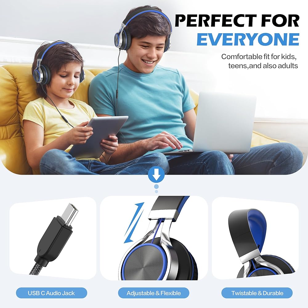 Foldable & Portable: Easy to store and carry, these headphones fold flat for travel, making them perfect for kids on the go, whether for school or vacation.
