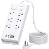 • 【10-IN-1 Power Strip Surge Protector】The plug outlet extender provide 6 AC and 4 USB to charge 10 devices simultaneously, the USB C port can charge up to 5V/3A. USB-A ports can charge up to 5V/2.4A Max
