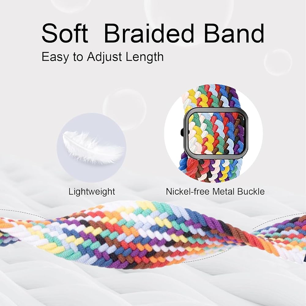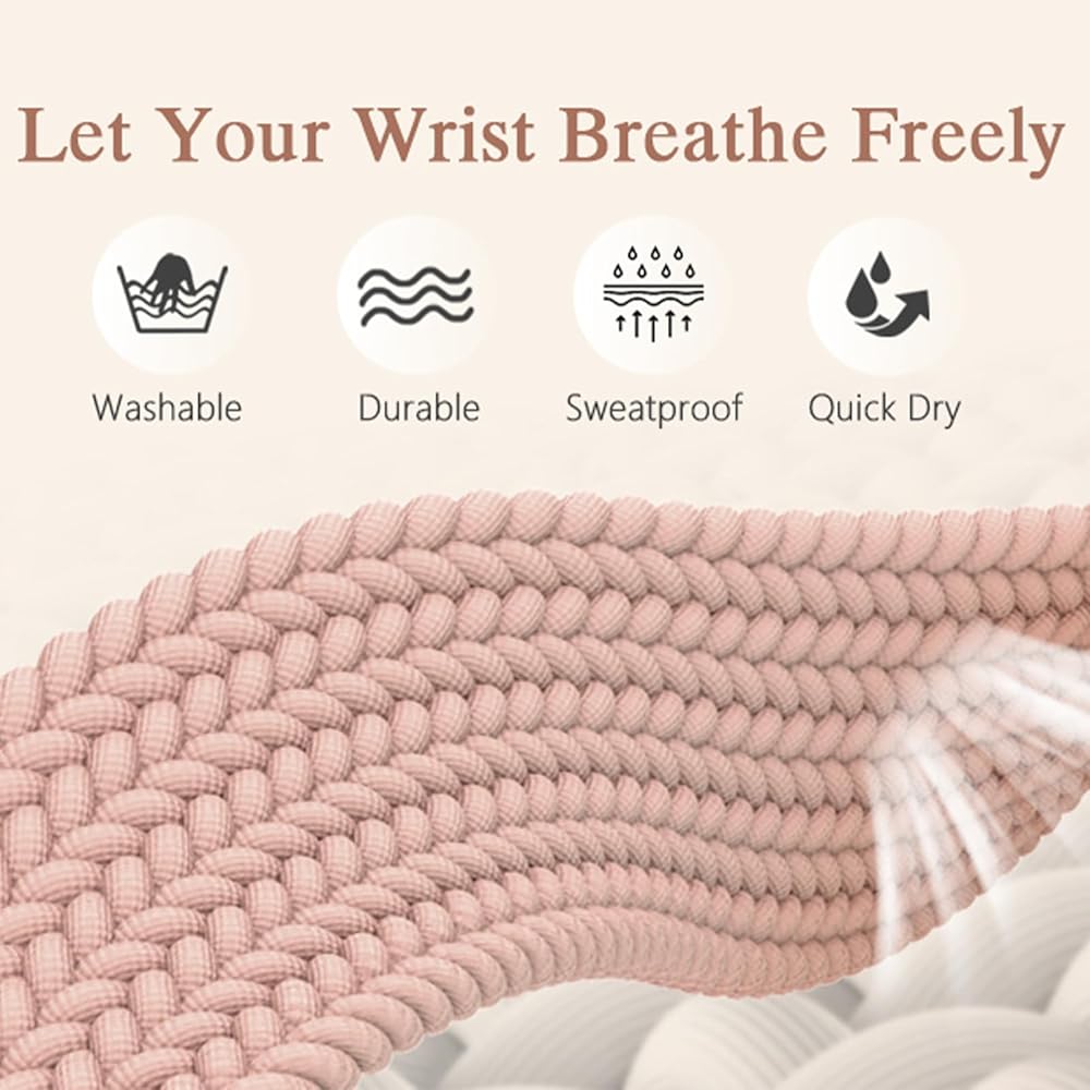 مواد مضفر عالية الجودة: النطاقات مصنوعة من مراكز مضفر عالية الجودة ومرنة. المواد المتينة والناعمة المضفر فوق معصمك تعمل على تحسين الدورة الدموية والراحة ، مما يتجنب تهيج الجلد ويمنحك تجربة ارتداء مريحة