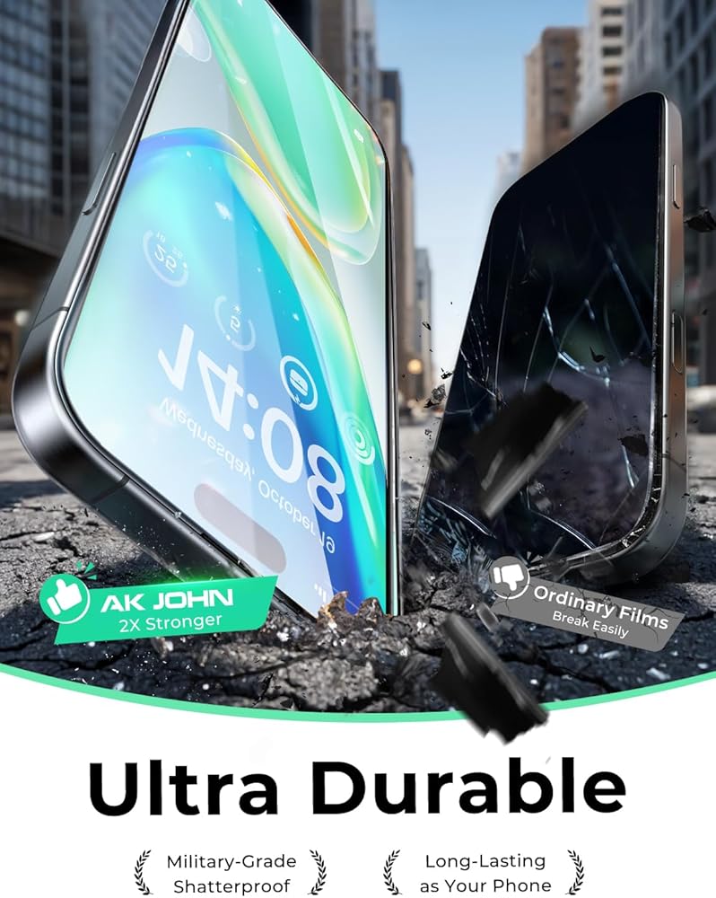 التصاق خالي من الفقاعات والقوية: يضم تقنية متطورة للتصنيع النانو ، AK John iPhone 15 Pro Max Privacy Screen Protector يضمن التثبيت الخالي من الفقاعات. التصاق القوي للغاية يخلق ختم فراغ يبقى في مكانه تمامًا