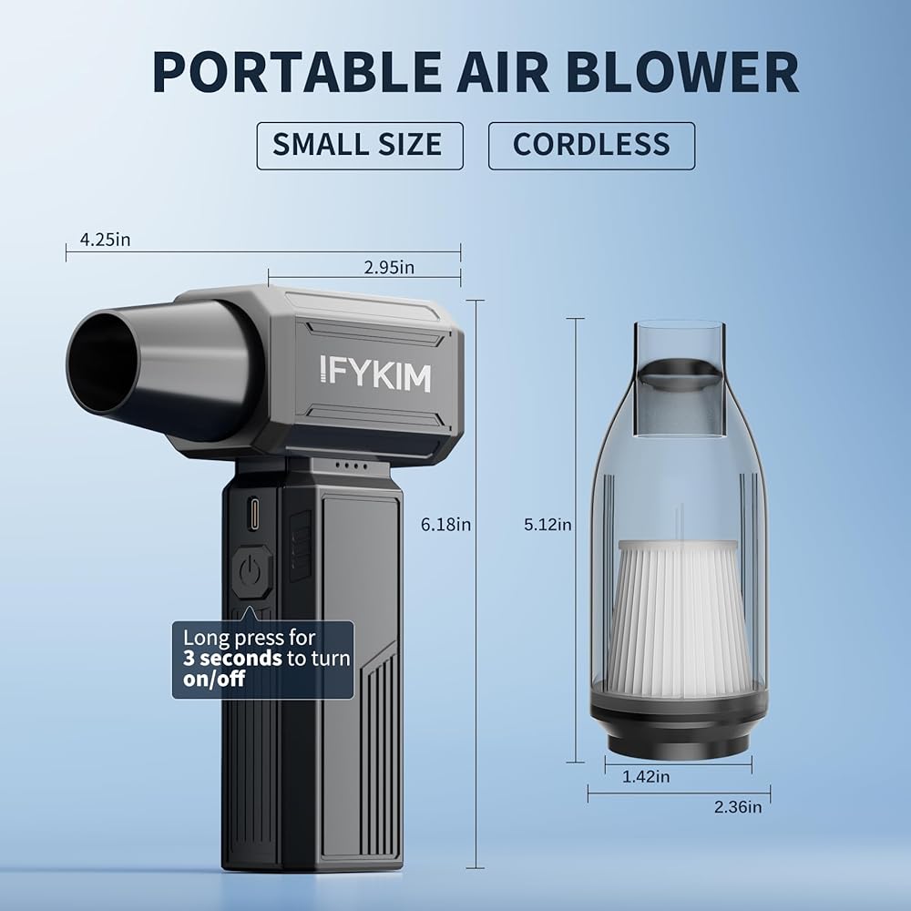 • باستخدام الإرشادات: اضغط على زر الطاقة لمدة 3 ثوان لتشغيل/إيقاف ، والانزلاق لأعلى/لأسفل للتحكم في السرعة وتدفق الهواء ، وبسيط للغاية وسريع لاستخدام الهواء. اقتراح: أولاً باستخدام وضع المنفاخ للتنظيف الأولي ، ثم استخدم وضع الفراغ للتنظيف العميق ، والذي سيجعل أنظف. ملاحظة: شحن منفاخ Duster المحمول بالكامل بعد استلامه