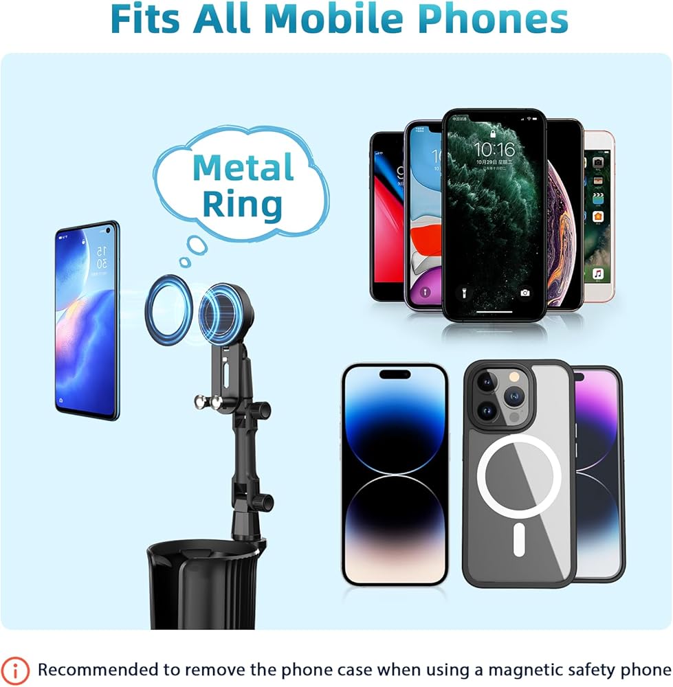 【مناسب لجميع الهاتف المحمول】 360 حامل هاتف دوار للسيارة مناسب لجميع الهواتف المحمولة ، ومناسبة للهاتف المحمول مع قذيفة الظهر المغناطيسية وحالات الهاتف المحمول مع وظيفة الشفط المغناطيسي. حامل هاتف حامل الكأس يأتي مع حلقتين مغناطيسيان