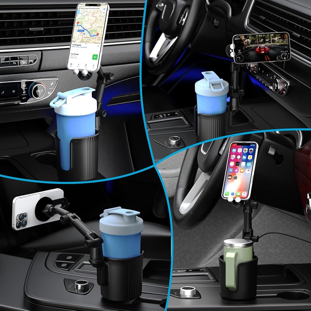 【حامل الشركة】 حامل كأس السيارة مع حامل الهاتف يمكنه إصلاح الهاتف بسهولة. يمنع حامل الهاتف على شكل كوب الهاتف من السقوط أثناء القيادة