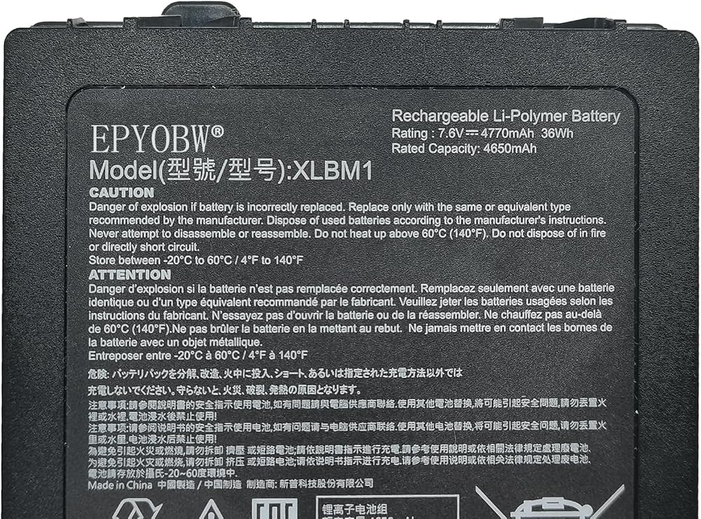 【المواصفات】 طراز البطارية: XLBM1 / الجهد: 7.6v / السعة: 36WH 4770mAh / اللون: الأسود / الحالة: العلامة التجارية الجديدة.