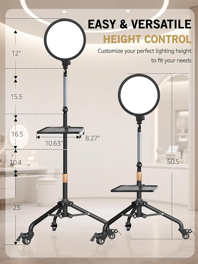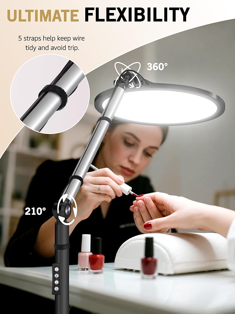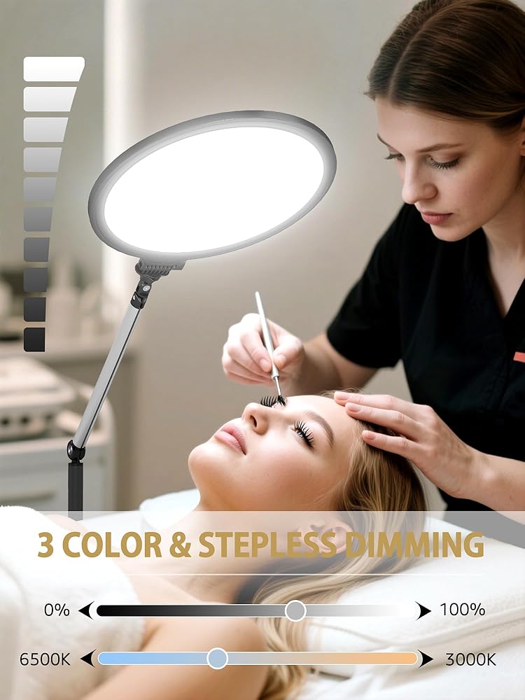 ضوء الرموش لوصلات الرموش، مصباح أرضي مع حامل متحرك وذراع مرن، ضوء تجميلي مع ارتفاع قابل للتعديل ودرجة حرارة اللون لفن الأظافر/الوشم/الجمال/المكياج/الحاجب/العناية بالبشرة/الحرف اليدوية